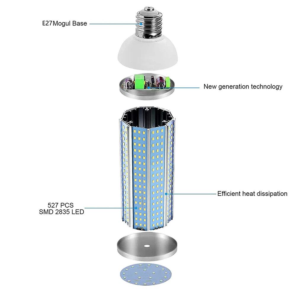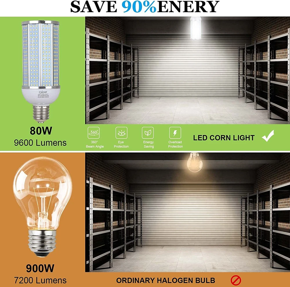 Product Description Description: LED corn light bulb can emit 5000k daylight white light, providing you with a bright work or living conditions. Feature: 80W LED Corn Light Bulb help you reduce more than 90% electricity bill cost by replacing your 600W incandescent bulb. 50,000 hours long lifespan Super stable quality and extended service life. It can serve for you up to 23 years with five hours use per day. 9600 lumens super bright& wide application Our corn bulb turns on instantly with no delay, lighting up every corner of your room with an incredible minimum of 120lm/watt.Unique design, corn lamp shape to achieve 360° shining. E26/E27 medium base for easy installation. Widely used in garage, warehouse, garden, workshop, courtyard, patio, barn, shopping mall, supermarket, station, street, school, hospital, restaurant, hotel etc. led corn light Constructed with 1070 cold forged aluminum and thermal conductivity 236W/mK,ensuring our LED corn bulb work in -4°to113°F.Intelligent IC constant current driver,ensure the lamp stable and durable working status. Specification: Voltage: AC 85V-265V Wattage: 80W LED Qty: 527 pcs 2835 LED Brightness: 9600 Lumen Color Temperature : 5000 Kelvin, Daylight White Bulb Life: 50000 Hours Socket: E26 Base Emitting Angle: 360 degrees Wide Application LED corn cob light widely used for Home, Backyard, Indoor , Garage, Shopping Center, Factory, Warehouse, High Bay Barn,Decoration, Photography, Roadway Lighting, etc. About Us Payment Shipping Terms Returns Contact Us We are NOT selling products. We are selling SERVICES! This is our philosophy in this ebay business. Our goal is to provide excellent before and after sales services to all our customers. If there is any issue about the item, please contact us before leaving feedback. Working time: CST+8 9:30 to 18:30, Monday to Saturday We will much appreciate with fast payment ,thank you so much! 1. We ship from USA Stock . We will provide a tracking number after shipping. 2. We will process and ship the package within 1 business days. If you have any issue with the transaction, please contact us before leaving Negative feedback. We will respond and solve your issue ASAP. We accept return, please contact us directly for return information. Please don't file return case before contact us. Please contact us via eBay Message .Thank you so much ! About Us We are NOT selling products. We are selling SERVICES! This is our philosophy in this ebay business. Our goal is to provide excellent before and after sales services to all our customers. If there is any issue about the item, please contact us before leaving feedback. Working time: CST+8 9:30 to 18:30, Monday to Saturday Payment We will much appreciate with fast payment ,thank you so much! Shipping 1. We ship from USA Stock . We will provide a tracking number after shipping. 2. We will process and ship the package within 1 business days. Terms If you have any issue with the transaction, please contact us before leaving Negative feedback. We will respond and solve your issue ASAP. Returns We accept return, please contact us directly for return information. Please don't file return case before contact us. Contact Us Please contact us via eBay Message .Thank you so much ! powered by