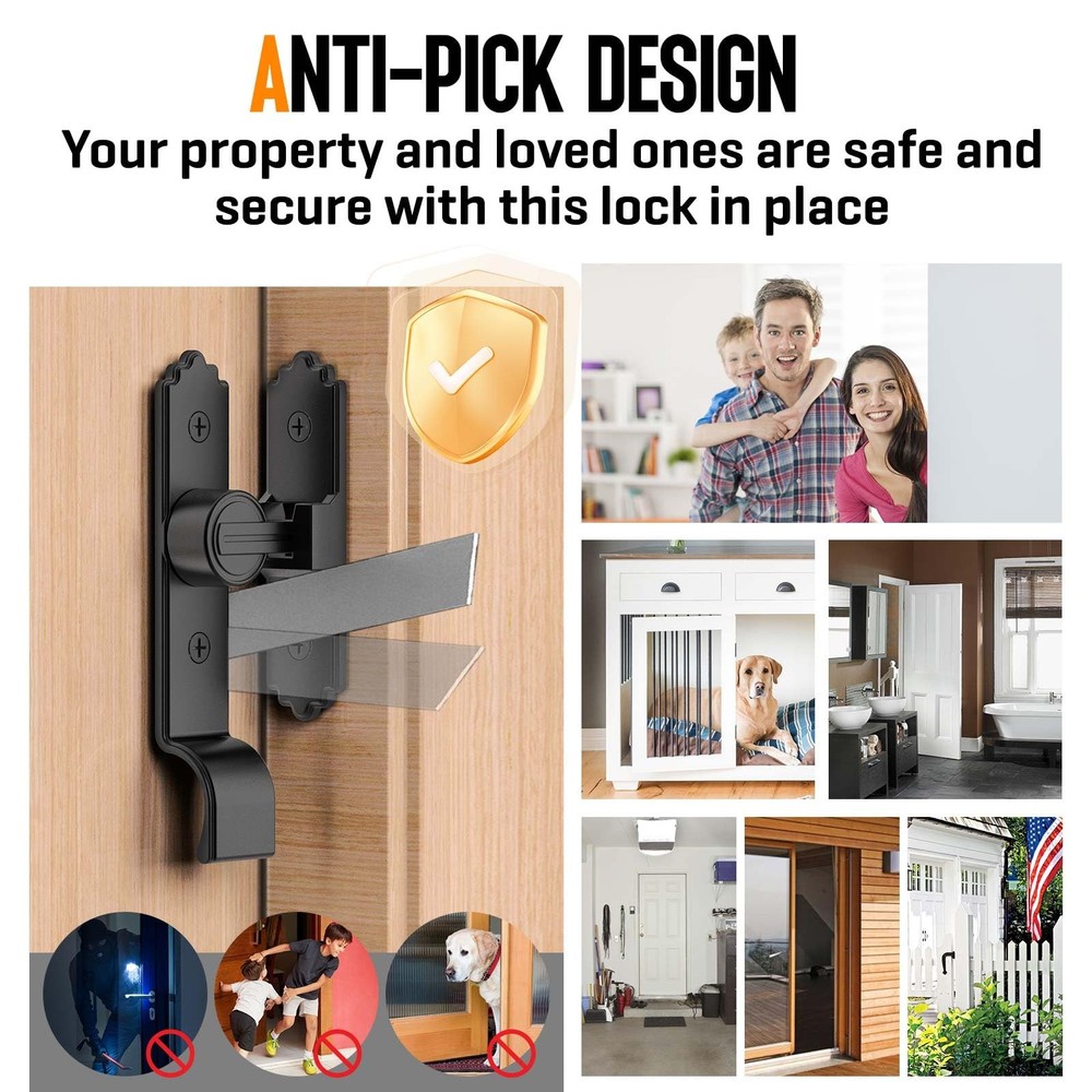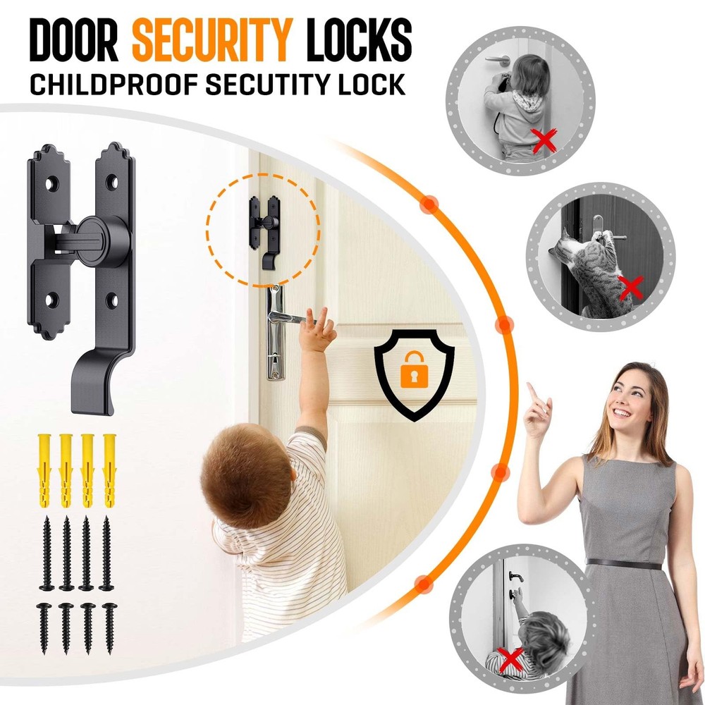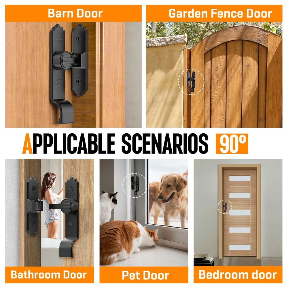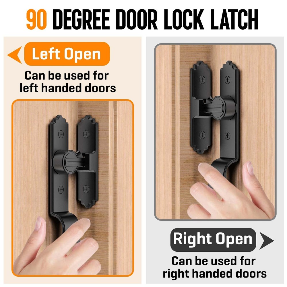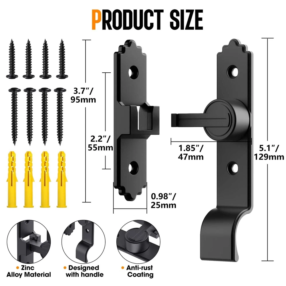 90/180 Degree Barn Door Lock, Gate Lock Latch with Handle, Sliding Barn Door Lock Latch for Bathroom, Bedroom,Cabinet, Garden, Garage, Outdoor QUALITY MATERIALS: The flip barn door lock hardware with handle is made from zinc alloy with multi-layer coating for long life and effective insulation from oxygen in the air. Durable and corrosion resistant to ensure longevity and reliability. INNOVATIVE UPGRADE: Heavy duty 90 degree barn door lock adds the functionality of a door handle. Security door locks provide security while greatly enhancing convenience and utility to ensure your home is safe. No need to worry about pets or small children accidentally opening the door and compromising your privacy. EASY TO INSTALL: Slide latch with handle fits either the left or right side of the door and comes complete with mounting hardware. Only 4 steel screws are required to secure the mounting hardware, making it easy to install and maintain (see illustration for detailed installation procedures). WIDE USE: Heavy duty 90 degree sliding barn door locks are suitable for home front doors, bedroom doors, garage doors, garden doors, bathroom doors, closet doors, kitchen doors, office doors, hotel doors and so on. PACKING LIST: The set contains 1 x door lock with handle, 8 x screws, 4 x plastic expansion tubes. Please check the size of the product carefully before purchase
