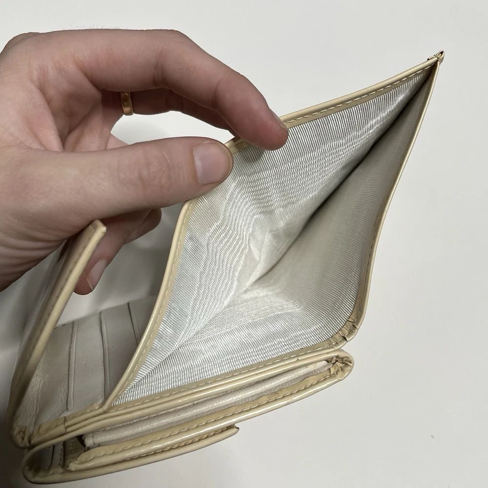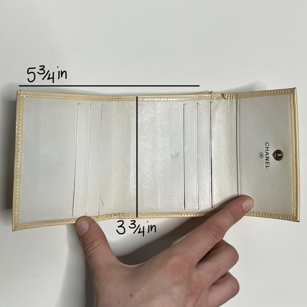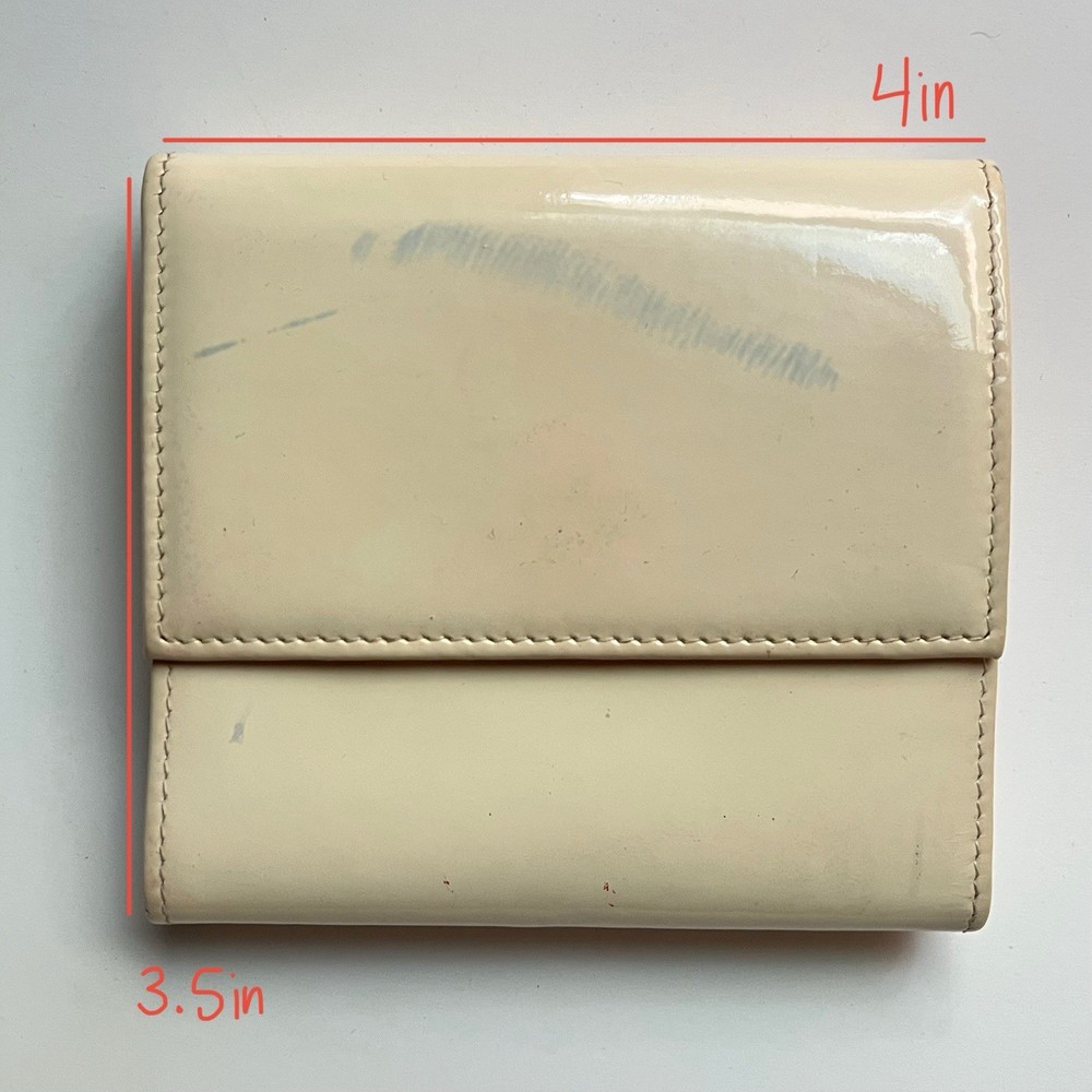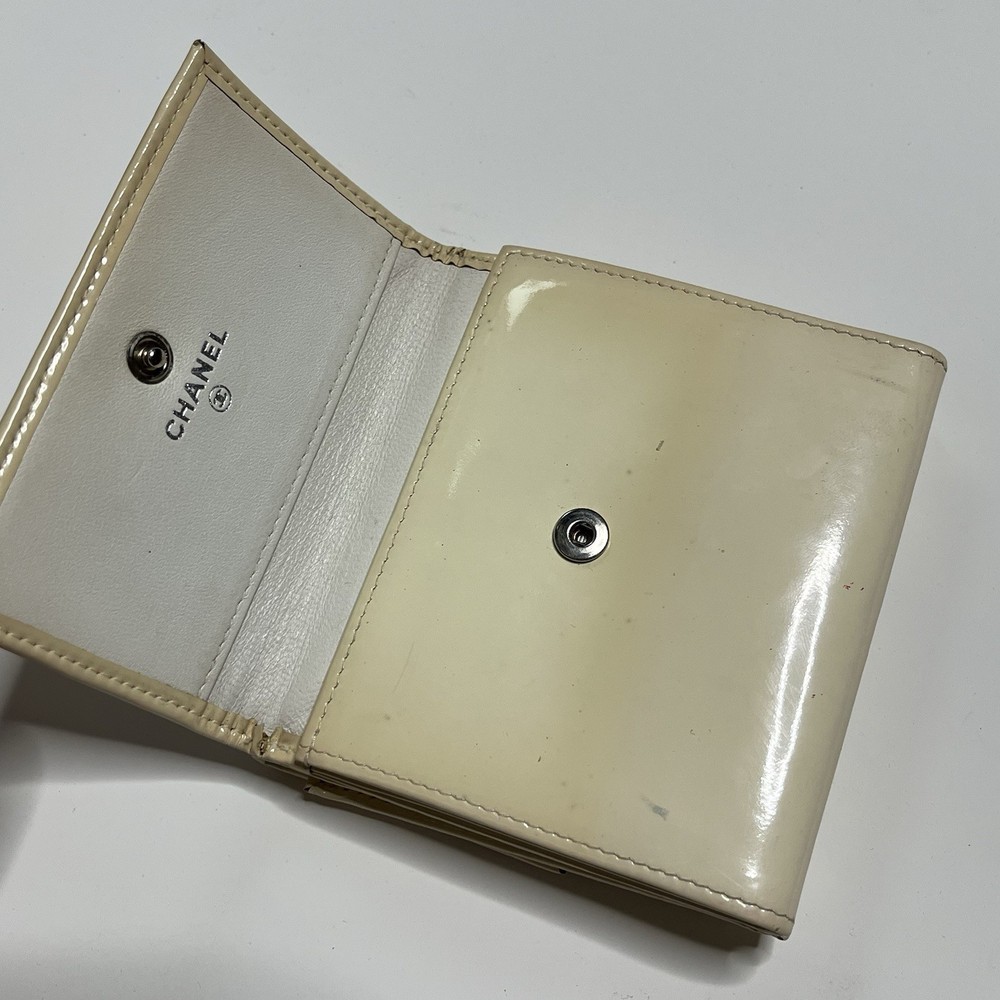90s chanel wallet some markings & oxidation white patent leather wallet with lots of compartments & ‘CC’ logo measurement of the the billfold section in pic 3
