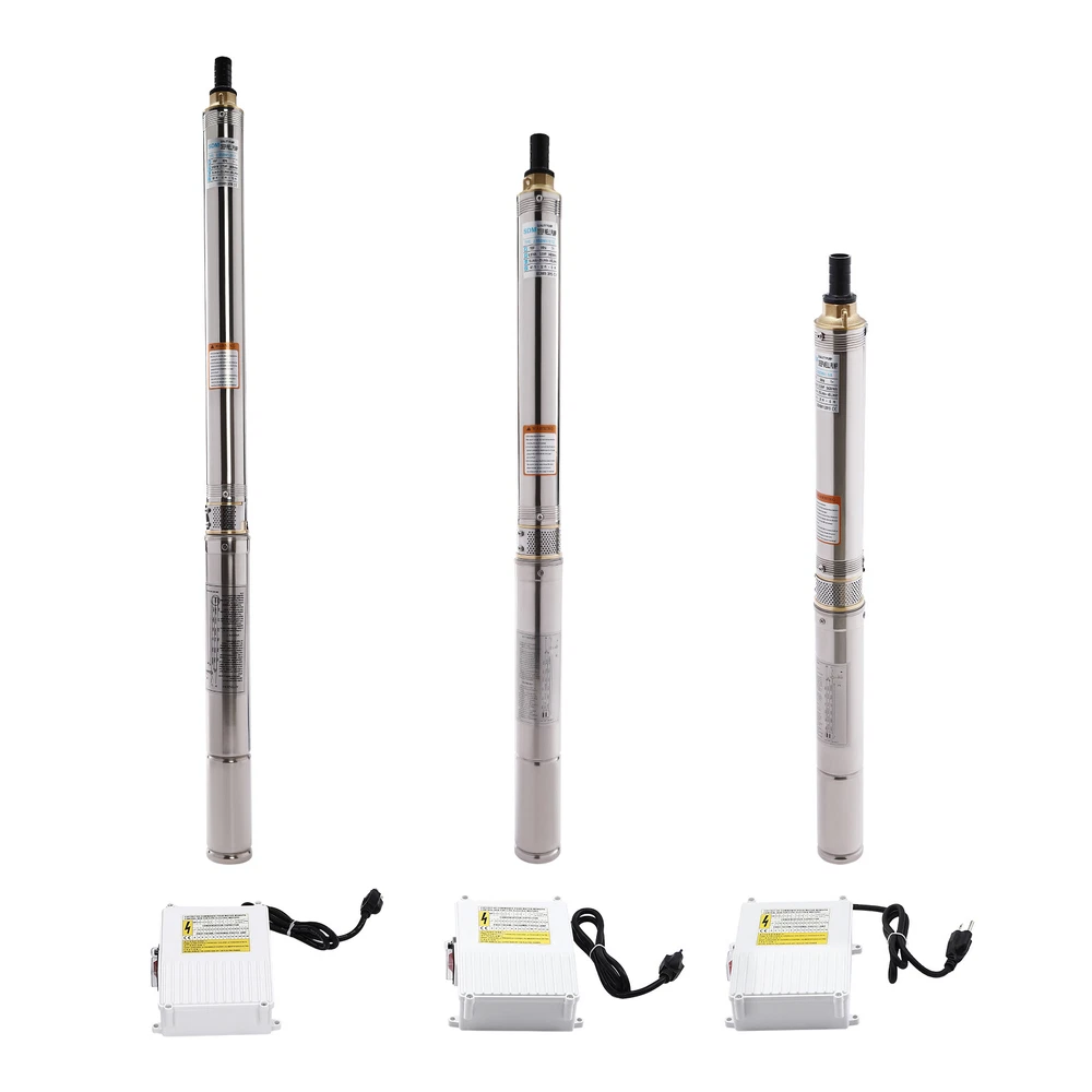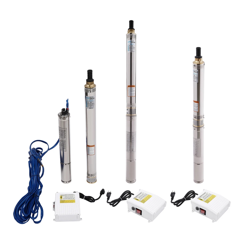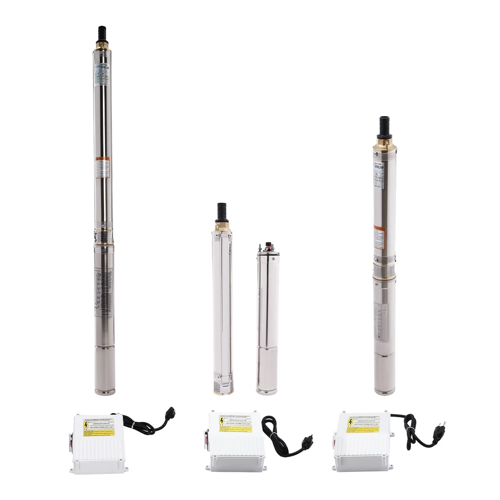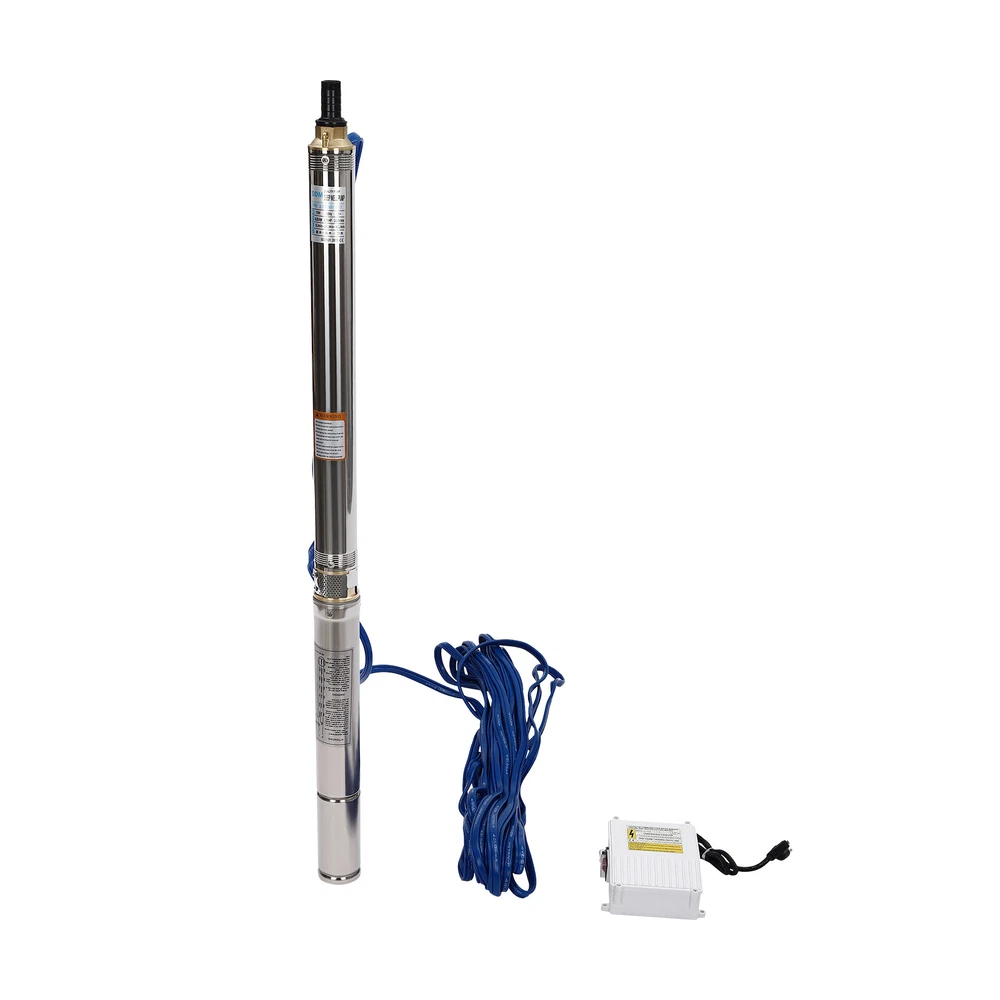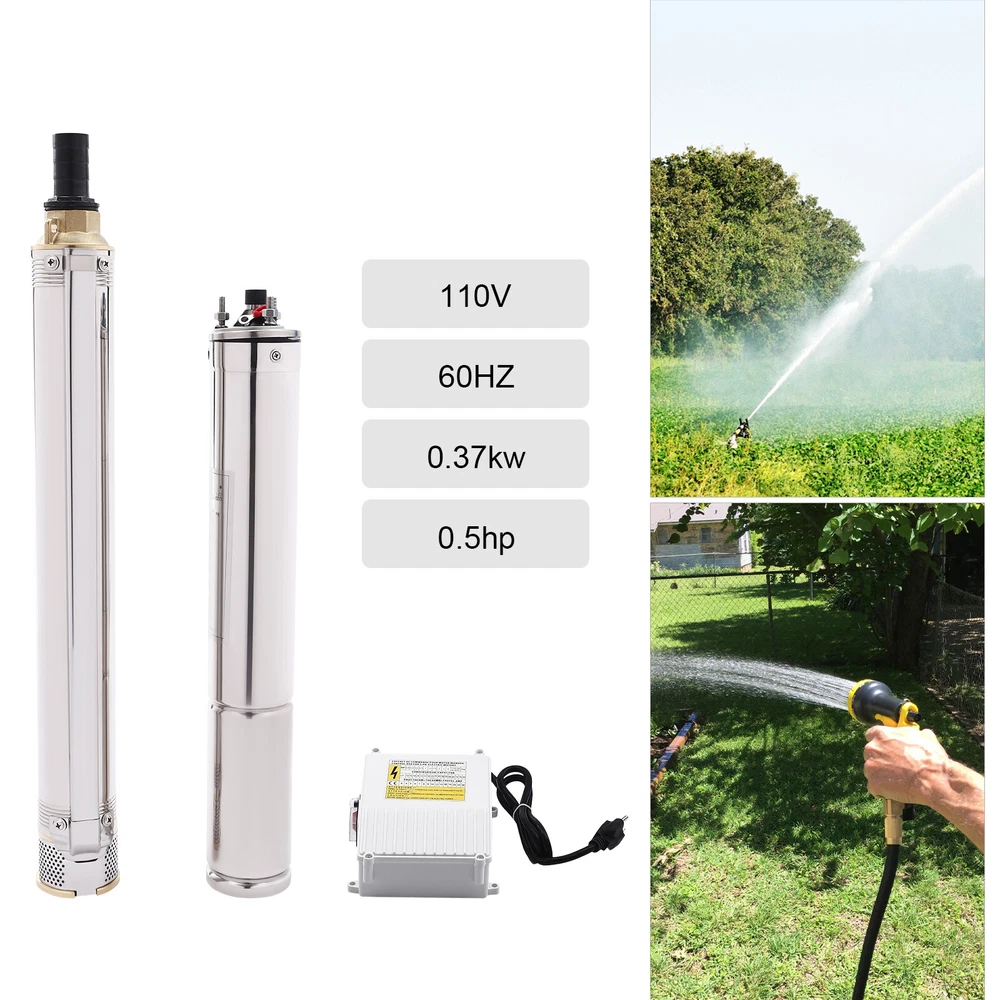 Type: 2.5SDM1.5/17 Power: 0.55KW(0.75HP) Delivery Lift: 13m/42.65ft, 43m/141ft, 60m/196.85ft Flow Rate: 5L/1.32gal/min, 25L/6.6gal/min, 45L/11.89gal/min Gross Weight: 12.5kg/27.56lbs Package Size: 96.5*26.5*11cm/37.99*10.43*4.33inch Product Size(D*H): 6.6*107.2cm/2.6*42.2in Type: 2.5SDM1.5/8 Power: 0.25KW(0.33HP) Delivery Lift: 6m/19.69ft, 21m/68.9ft, 28m/91.86ft Gross Weight: 9kg/19.84lbs Package Size: 105*11*20cm/41.34*4.33*7.87inch Product Size(D*H): 6.6*77.3cm/2.6*30.43in Type: 2.5SDM1.5/12 Power: 0.37KW(0.5HP) Delivery Lift: 9m/29.53ft, 32m/105ft, 41m/134.5ft Gross Weight: 10.2kg/22.49lbs Package Size: 125*20*11cm/49.21*4.33*7.87inch Product Size(D*H): 6.6*90.5cm/2.6*35.63in Package Included 1* Submersible Pump 1* Water Outlet 1* Control Box 1* English Manual 91.86/134.5/196.85 FT Deep Well Submersible Pump 1" Stainless Steel Water Pump Description If you're looking for an efficient and simple irrigation solution, take a look at our submersible pump, a jewel in the world of irrigation technology for its performance and ease of operation. This submersible pump's unique design of deep water and silent operation quietly provide your farmland with a constant supply of living water, making every inch of soil come alive, which is undoubtedly the ideal choice for scientific irrigation and improved agricultural efficiency. Key Features Build to Last : It is made of high-quality stainless steel, copper, plastic, and rubber, and adopts a polishing process, making it solid, and not prone to rust and corrosion, so it can remain beautiful and practical for a long time. High Efficiency: The 0.55/0.25/0.37KW submersible motor, 3420rpm speed, maximum 11.89gal flow rate with 17 impellers as well as a diffuser and intake screen make your pumping and watering work faster and easier. Large Delivery Lift: The maximum lift of the pump is 196.85/91.86/134.5ft, which allows you to irrigate farmland, fish ponds, and orchards for a long distance, saving the time and cost of manual transportation. Easy to Clean: Thanks to its smooth surface and simple structure, and it is used to work in water, so it is very easy to clean. Space-saving: Vertical construction and compact dimensions allow it to be used or stored in the trunk of a car without taking up too much space. Simple Installation: Simple construction and a detailed English manual make it easy to put together and get up and running quickly. Protective Package: Our product is packaged with a sponge to maximize protection from damage during shipping. Customer Service: We aim to provide quality products and services. If you have any problems, please feel free to contact us. We will reply and solve the problem for you as soon as possible. Details Standard Water Outlet: The pump adopts a 1-inch large diameter water outlet, which can be matched with different types of water pipes and is very practical. Long Cable: The 65.62ft long cable increases safety and convenience for you. Application This product is suitable for extracting groundwater from deep wells, and can also be used in water-lifting projects of rivers, reservoirs, canals, and so on. It can be used for farmland irrigation, and water for humans in mountainous areas, villages, homes, farms, campervans, cities, factories, and railways. Specifications Material: Stainless Steel, Copper, Plastic, Rubber Color: Silver and Blue Process: Polishing Assembly Required: Yes Power Source: Corded Electric Plug Type: US Standard Voltage: 110V, 60Hz Speed: 3420rpm Number of Impellers: 17 Outlet Diameter : 2.54cm/1in Cable Length: 20m/65.62ft Control Box Size: 18.5*15*6.8cm/7.28*5.91*2.68in Water Outlet Size(D*H): 2.54*5.5cm/1*2.17in Type: 2.5SDM1.5/17 Power: 0.55KW(0.75HP) Delivery Lift: 13m/42.65ft, 43m/141ft, 60m/ 196.85ft Flow Rate: 5L/1.32gal/min, 25L/6.6gal/min, 45L/11.89gal/min Gross Weight: 12.5kg /27.56lbs Package Size: 96.5*26.5*11cm/37.99*10.43*4.33inch Product Size(D*H): 6.6*107.2cm/2.6*42.2in Type: 2.5SDM1.5/8 Power: 0.25KW(0.33HP) Delivery Lift: 6m/19.69ft, 21m/68.9ft, 28m/ 91.86ft Gross Weight: 9kg /19.84lbs Package Size: 105*11*20cm/41.34*4.33*7.87inch Product Size(D*H): 6.6*77.3cm/2.6*30.43in Type: 2.5SDM1.5/12 Power: 0.37KW(0.5HP) Delivery Lift: 9m/29.53ft, 32m/105ft, 41m/ 134.5ft Gross Weight: 10.2kg /22.49lbs Package Size: 125*20*11cm/49.21*4.33*7.87inch Product Size(D*H): 6.6*90.5cm/2.6*35.63in Package Included 1* Submersible Pump 1* Water Outlet 1* Control Box 1* English Manual Notes Please check that the voltage and frequency correspond to local standards before ordering. Please do not use it without water. Please note that the pump needs to be installed vertically. Please note that the pumping speed is related to the depth at which the water pump enters the water, and the deeper the depth, the lower the speed. Please note that this product is only suitable for pumping clear water, not oil, chemical raw materials, and other liquids. Please read the operating manual and label completely before use, and pay particular attention to the safety instructions included. Please allow the slight color difference caused by the shooting light and 1-3cm error due to manual measurement, and make sure you do not mind before ordering. Payment Delivery details Terms of sales About us Contact us Payment We accept ebay payment 。 Fees such as import duties, taxes are not included in the item price or shipping costs. These charges are the buyer's responsibility. Delivery details Shipping: 2-9 working days to: USA Terms of sales We maintain high standards of excellence and strive for hundred percent customer satisfaction. Feedback is very important to us. We hope that you contact us immediately before you give neutral or negative feedback, so that we can address your concerns. It is impossible to address issues if we do not know about them! About us Your satis faction is our ultimate goal. We work hard to earn your trust and future business. Our certified technicians have tested each item before shipping. The unit 
