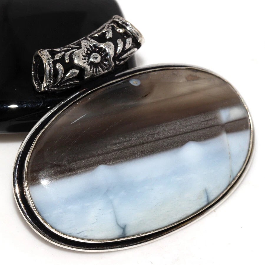 925 Silver Plated Owhyee Blue Opal Ethnic Chunky Pendant Jewelry Size 1.5" JW