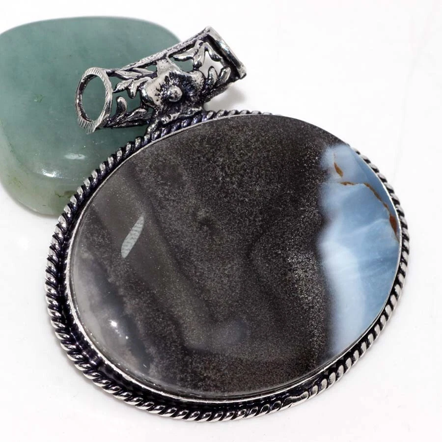 925 Silver Plated Owhyee Blue Opal Jewellery Pendant Handmade Size 1.7" JW
