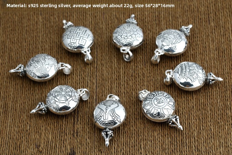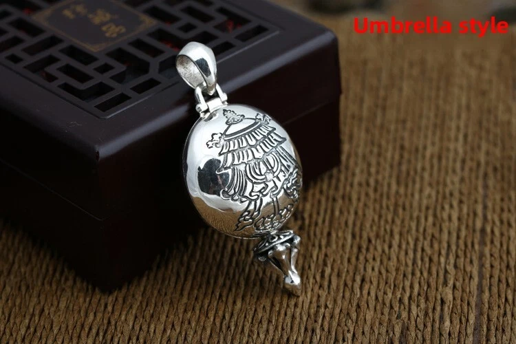 925 Silver TIBETAN Buddhist Eight Treasure Gawu Box Pendant Locket Prayer Amulet