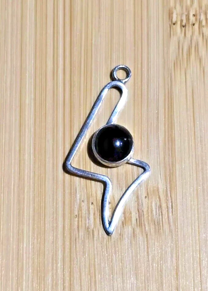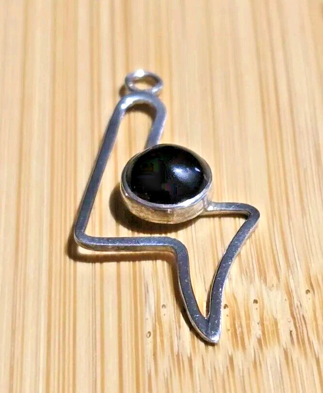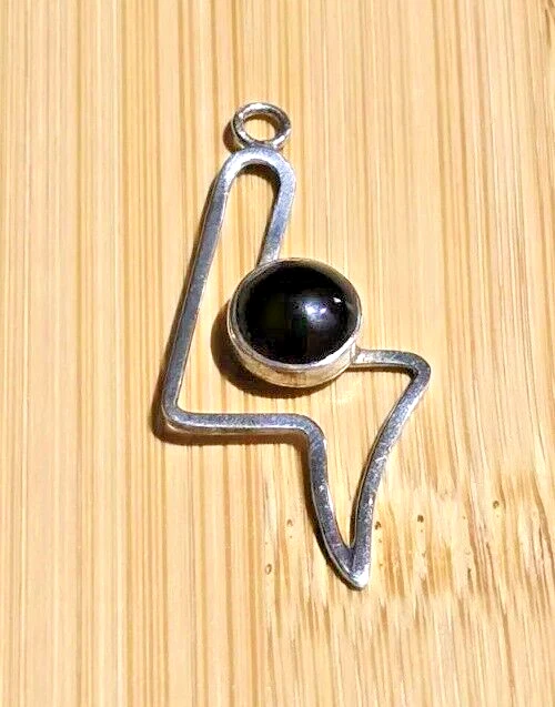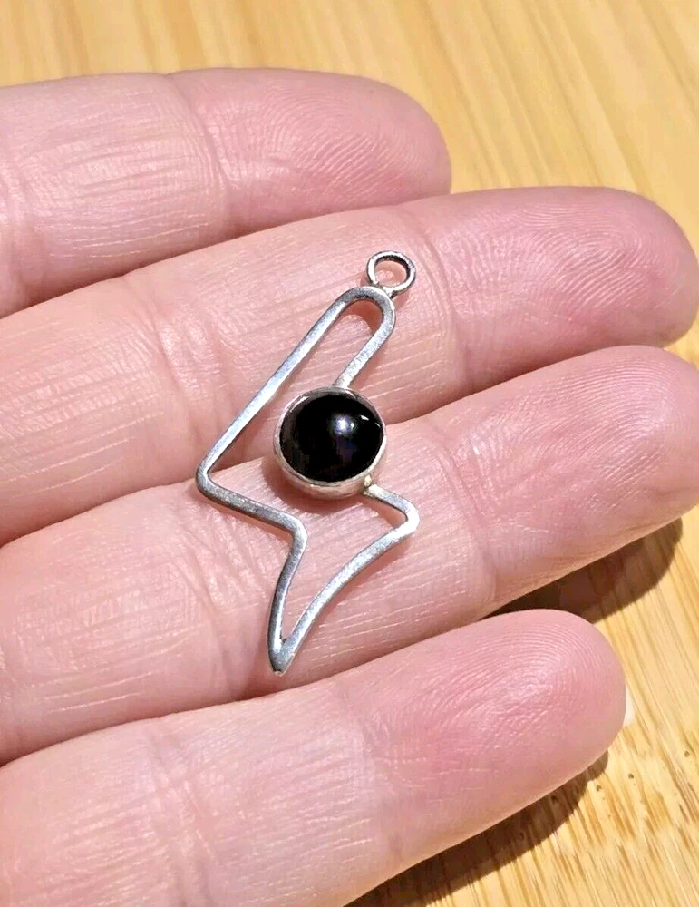 925 Sterling Silver Geometric Abstract Pendant with Black Onyx Stone Modern Art