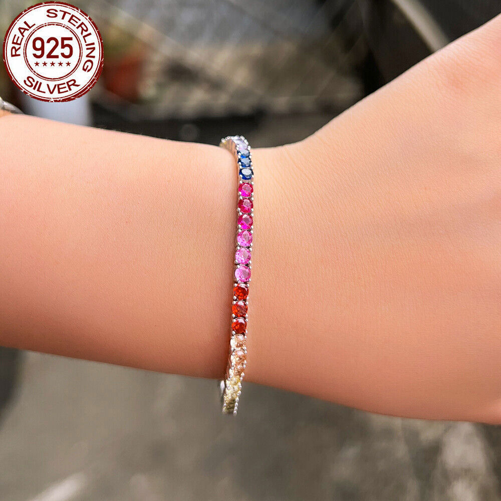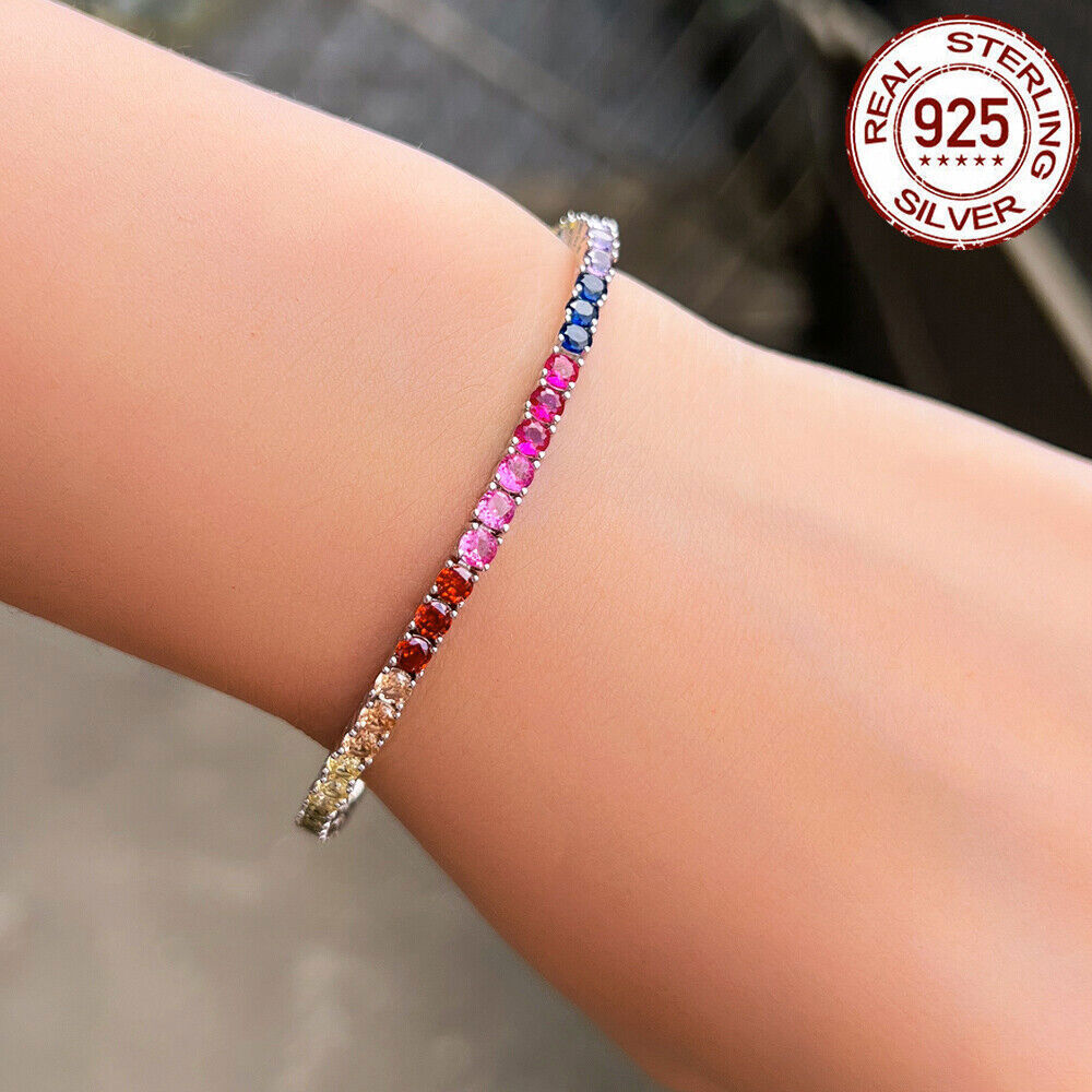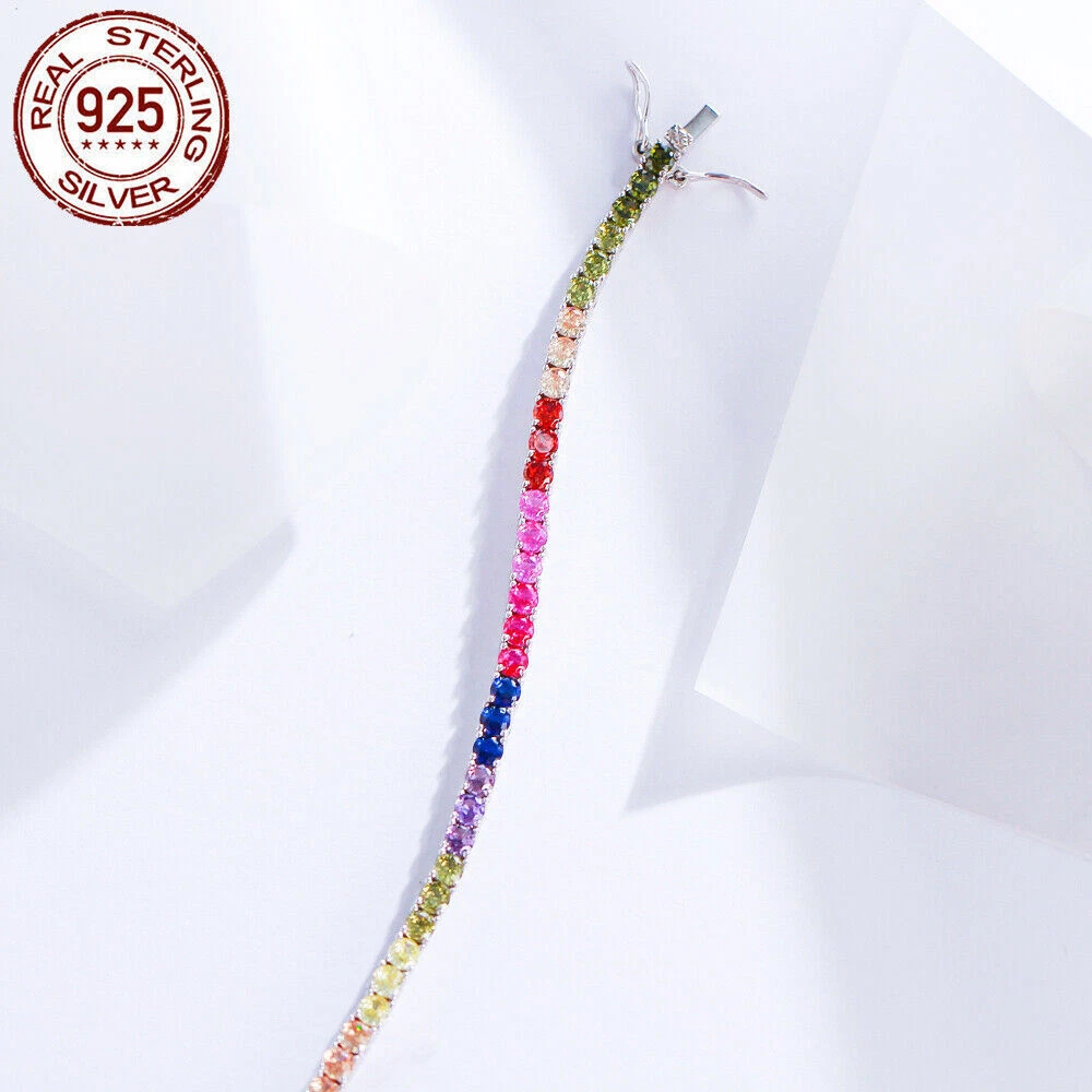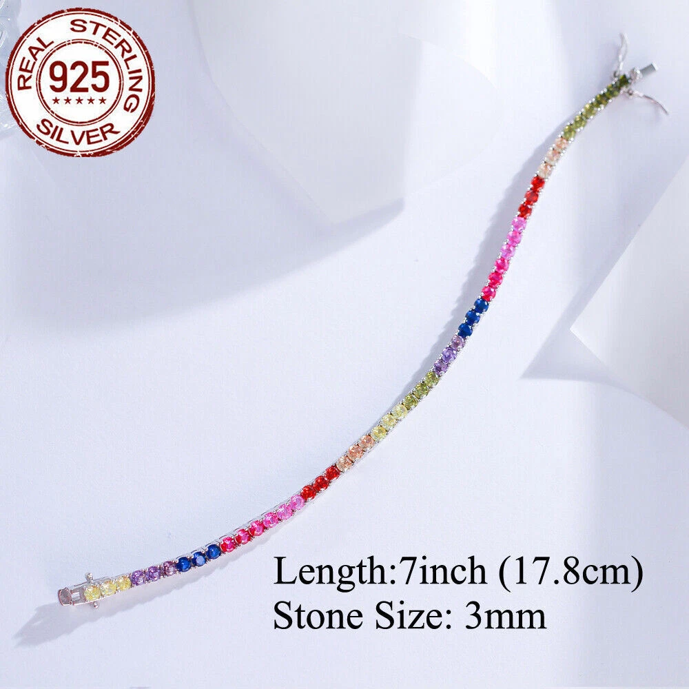 925 Sterling Silver Bracelet Multicolored Round Tennis CZ Cubic Zirconia Jewelry Specifications: Condition: New Size: 7 inch (17.8 cm) Stone Size: 3 mm Features: 1. Material - Top Level 925 Sterling Silver. Excellent Cut Simulated Diamond. Enjoy the dazzling sparkle from 925 Sterling Silver. 2. These Fashion Stud Earrings are Suitable for Daily Wear. 3. Perfect for Various Occasions: Ideal for Wedding, Prom, Pageant, Parties, Proms, Homecoming, Black Tie Formal Affairs, Holidays and Special Occasions. 4. A Perfect Jewelry Gift for Women , Girls , Mother , Wife , Lover , Fiancee , Friends . Package Includes: 1pc Bracelet Payment Delivery details Terms of sales & Feedbacks About us & Contact us Our commitment Payment 1. We only ship item to your Ebay verified address . Please Make sure all address are the same 2.Please leave note in ebay when making the payment if you have any special request (colors/size). Delivery details We only send items to the registered eBay address.Items will be shipped within 2 business days from the date payment is received (not include public holiday and weekend) . As per eBay regulations, import duties, taxes, and customs charges are the buyer's responsibility. Please check with your country's customs office to determine what these additional costs may be prior to bidding or buying. Terms of sales & Feedbacks After-Sale Please contact us to request a return/replace/refund authorization .It will be best if you use ebay message to contact me. 1, Return and replacement request is available only the requests within 30 days after parcel received. 2, Returning the item as the same condition as received. Situation and solution Defectives ---Please contact us and provide a photo of the defective part. After situation confirmed,we will offer you refund/return/replacement according to the situation Not as Described ---Please contact us and provide a photo of the wrong part. After situation confirmed,we will offer you refund/return/replacement according to the situation Not Received ---Please undersatnding shipping on the way was out of our control ,because of the busy shipping season,holidays,bad weather or force majeure etc. It may be delay for days. But if it took too much time and not deliveried, Please message me, I will offer you solution for it. Feedbacks 1. If you are satisfied with our service, please leave us a + Good feedback and rate the details of the transaction (DSR) with a. . When you rate the shipping time part please take international transit into consideration.] Your recognition will make us more confident to develop business and serve you better. 2. Please contact us first if you have any problem with the items,we will solve it in time ! 3. Please do not leave Neutral or Negative Feedback before you contact us, Thanks For Your Business ! About us & Contact us Working time: Chinese time(Eastern eight zones):Monday to Friday ,9:00 am to 6:00 pm. We do not work on chinese legal holiday. Message reply: We will reply all messages within 24 hours of business time. Please contact us via ebay message, it was the best way for both you and us to solve problems. Any questions or anything you need, please feel free to contact us. Our commitment 1.Wholesale price will be offered to you if you need in bulk ! 2.About Size