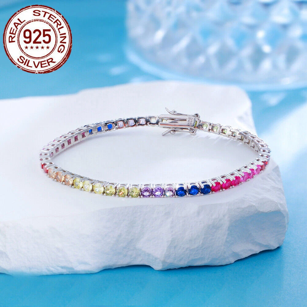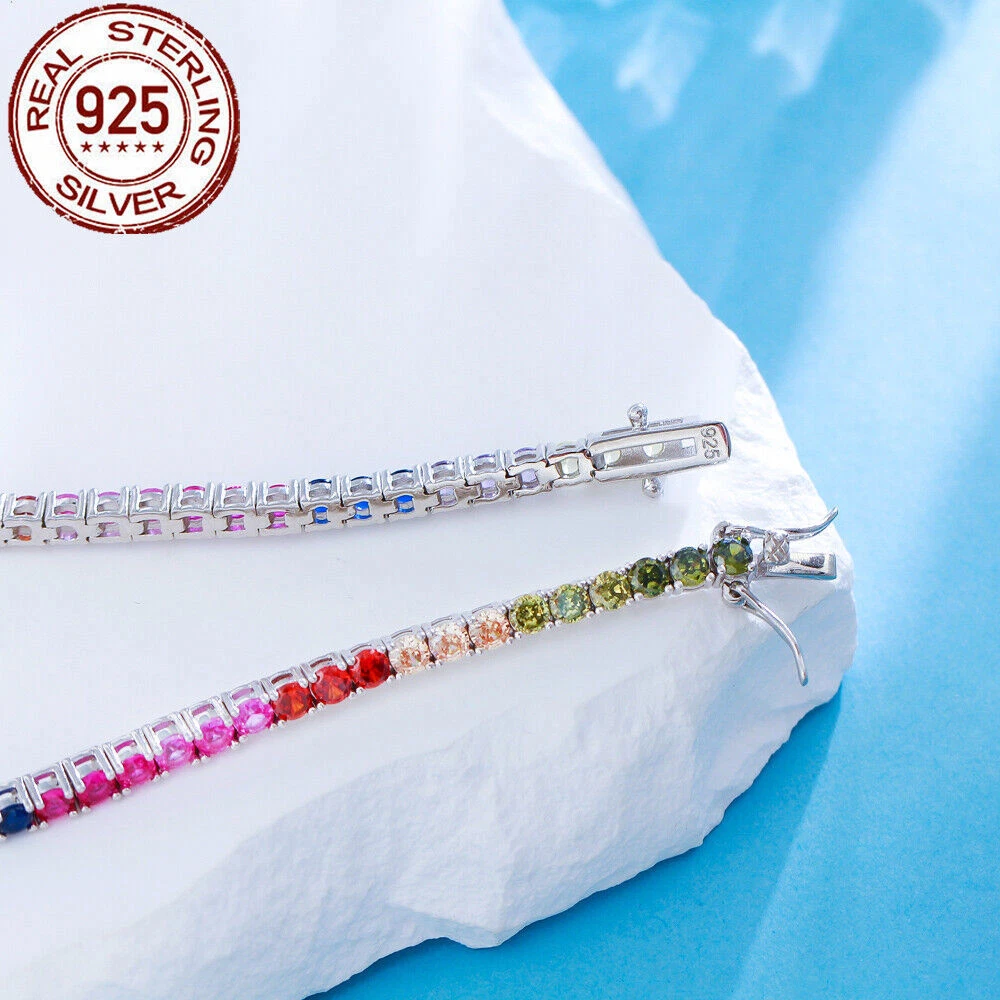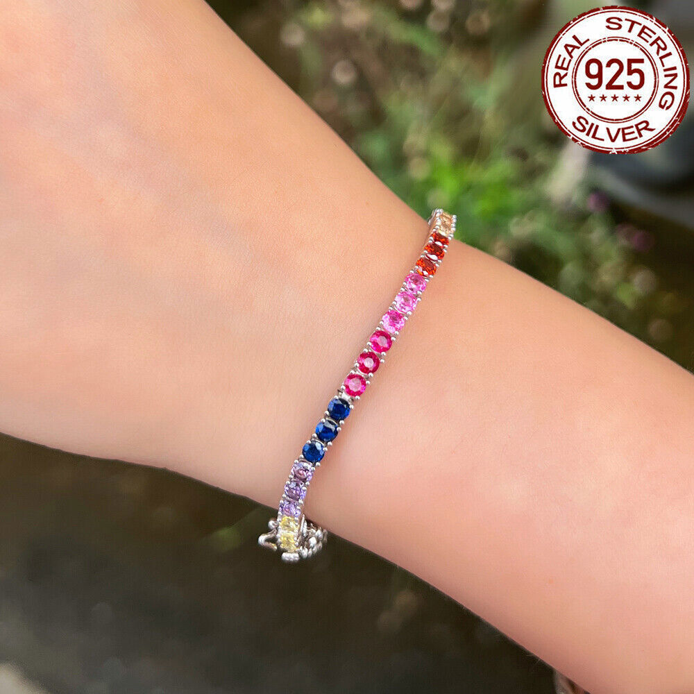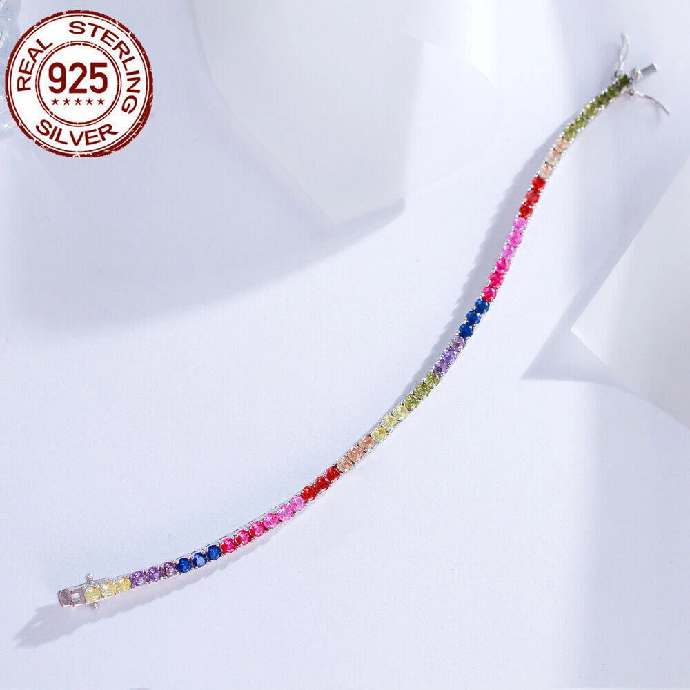 925 Sterling Silver Bracelet Multicolored Round Tennis CZ Cubic Zirconia Jewelry Specifications: Condition: New Size: 7 inch (17.8 cm) Stone Size: 3 mm Features: 1. Material - Top Level 925 Sterling Silver. Excellent Cut Simulated Diamond. Enjoy the dazzling sparkle from 925 Sterling Silver. 2. These Fashion Stud Earrings are Suitable for Daily Wear. 3. Perfect for Various Occasions: Ideal for Wedding, Prom, Pageant, Parties, Proms, Homecoming, Black Tie Formal Affairs, Holidays and Special Occasions. 4. A Perfect Jewelry Gift for Women , Girls , Mother , Wife , Lover , Fiancee , Friends . Package Includes: 1pc Bracelet Payment Delivery details Terms of sales & Feedbacks About us & Contact us Our commitment Payment 1. We only ship item to your Ebay verified address . Please Make sure all address are the same 2.Please leave note in ebay when making the payment if you have any special request (colors/size). Delivery details We only send items to the registered eBay address.Items will be shipped within 2 business days from the date payment is received (not include public holiday and weekend) . As per eBay regulations, import duties, taxes, and customs charges are the buyer's responsibility. Please check with your country's customs office to determine what these additional costs may be prior to bidding or buying. Terms of sales & Feedbacks After-Sale Please contact us to request a return/replace/refund authorization .It will be best if you use ebay message to contact me. 1, Return and replacement request is available only the requests within 30 days after parcel received. 2, Returning the item as the same condition as received. Situation and solution Defectives ---Please contact us and provide a photo of the defective part. After situation confirmed,we will offer you refund/return/replacement according to the situation Not as Described ---Please contact us and provide a photo of the wrong part. After situation confirmed,we will offer you refund/return/replacement according to the situation Not Received ---Please undersatnding shipping on the way was out of our control ,because of the busy shipping season,holidays,bad weather or force majeure etc. It may be delay for days. But if it took too much time and not deliveried, Please message me, I will offer you solution for it. Feedbacks 1. If you are satisfied with our service, please leave us a + Good feedback and rate the details of the transaction (DSR) with a. . When you rate the shipping time part please take international transit into consideration.] Your recognition will make us more confident to develop business and serve you better. 2. Please contact us first if you have any problem with the items,we will solve it in time ! 3. Please do not leave Neutral or Negative Feedback before you contact us, Thanks For Your Business ! About us & Contact us Working time: Chinese time(Eastern eight zones):Monday to Friday ,9:00 am to 6:00 pm. We do not work on chinese legal holiday. Message reply: We will reply all messages within 24 hours of business time. Please contact us via ebay message, it was the best way for both you and us to solve problems. Any questions or anything you need, please feel free to contact us. Our commitment 1.Wholesale price will be offered to you if you need in bulk ! 2.About Size