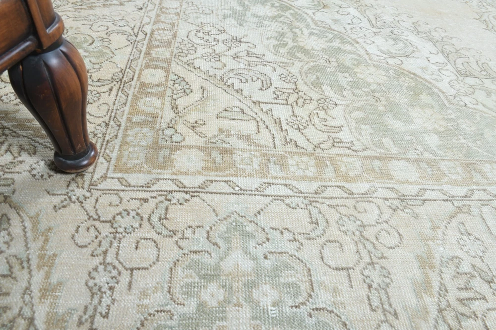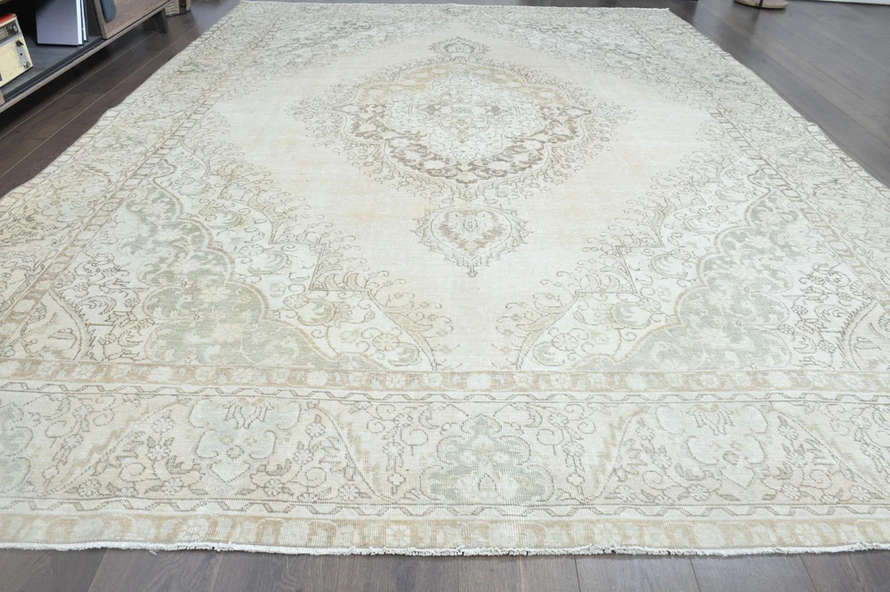 $ 1056.09.3x12.9 ft, OVERSIZED Vintage Turkish Oushak Rug, Faded Beige Handmade Wool Rug