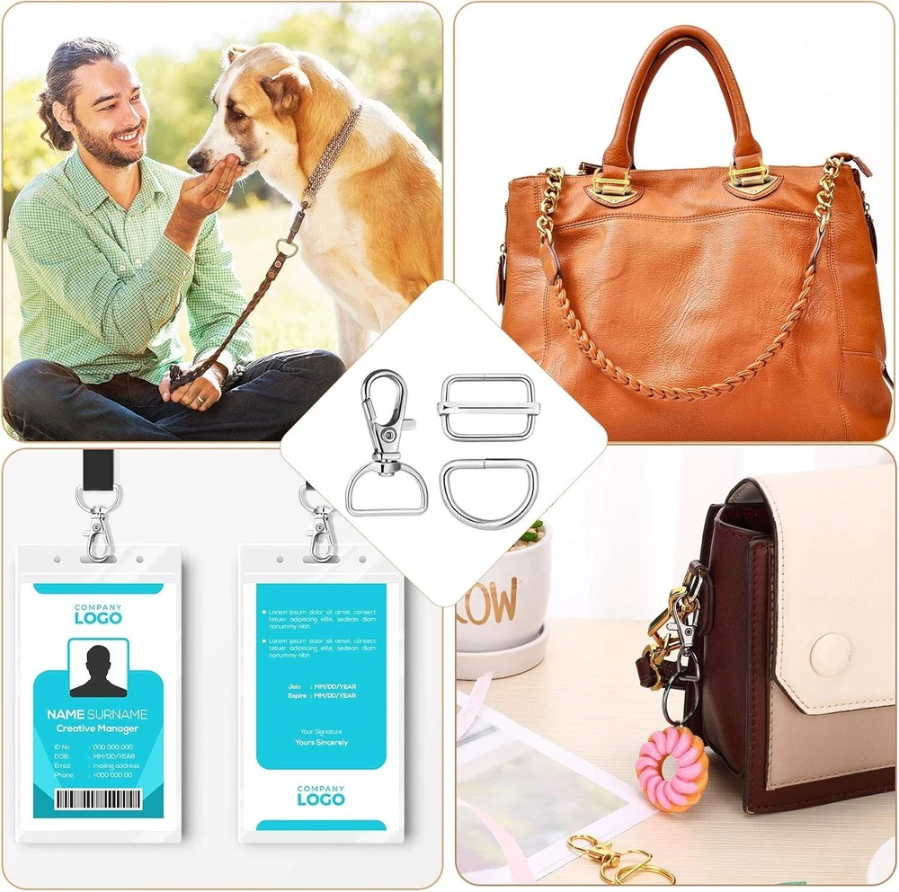 96 Pieces Swivel Clasps with D Rings and Slide Buckles Set Lanyard Snap Hooks Keychain Clip Hooks D Keychain Rings Lobster Claw Clasps for Keychain Purse Hardware Sewing Craft Project, 8 Colors About this item Package details: there will be 32 pieces swivel clasps, 32 pieces D-rings and 32 pieces slide buckles for you, all contain 8 different colors, 4 pieces per color for each kind of metal item, sufficient quantity and classic colors will meet your multiple DIY needs Multiple colors: the lobster clasps, D-rings and slide buckles come with multiple colors, such as silver, gold, black, rose red, bronze and so on, which are also not easy to fade and can be maintained for a long time, you can match them with different DIY projects, sewing projects or keychain making projects Durable to use: these keychain making accessories are made of sturdy quality metal material, not easy to break or deform, easy to use and convenient to store, metallic luster on the surface makes these accessories look shiny and delicate Can be rotated: these metal keychain buckles can be rotated up to 360 degrees, which allows you to rotate them in any direction to easily install your keychain, brings you much convenience and saves you much effort Extensive functions: keychain clip hooks with D-rings and slide buckles can be widely applied for backpack pendants, necklaces, wallets, anklets, sweater chains, dog collars, etc., or to make jewelry crafts, and other small objects
