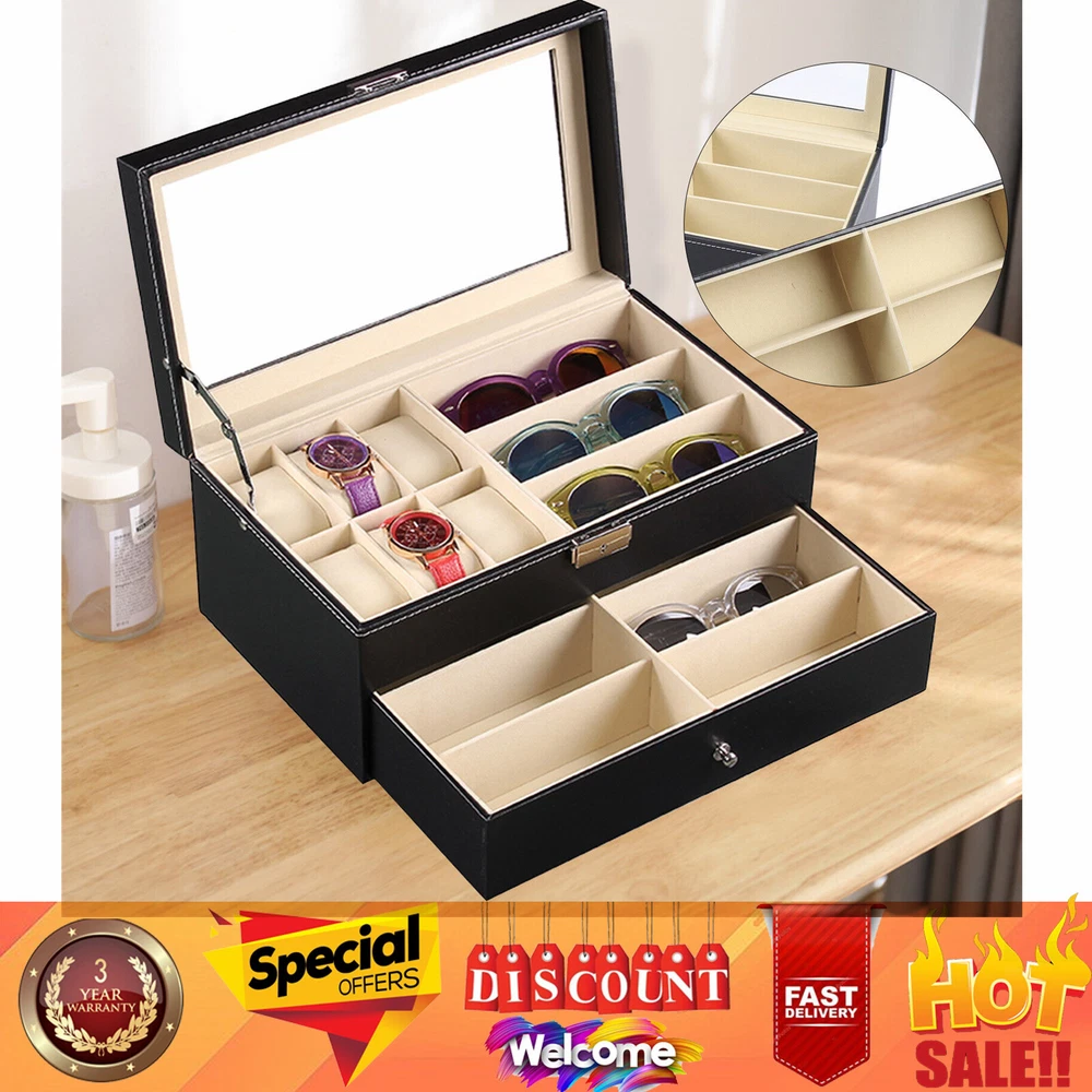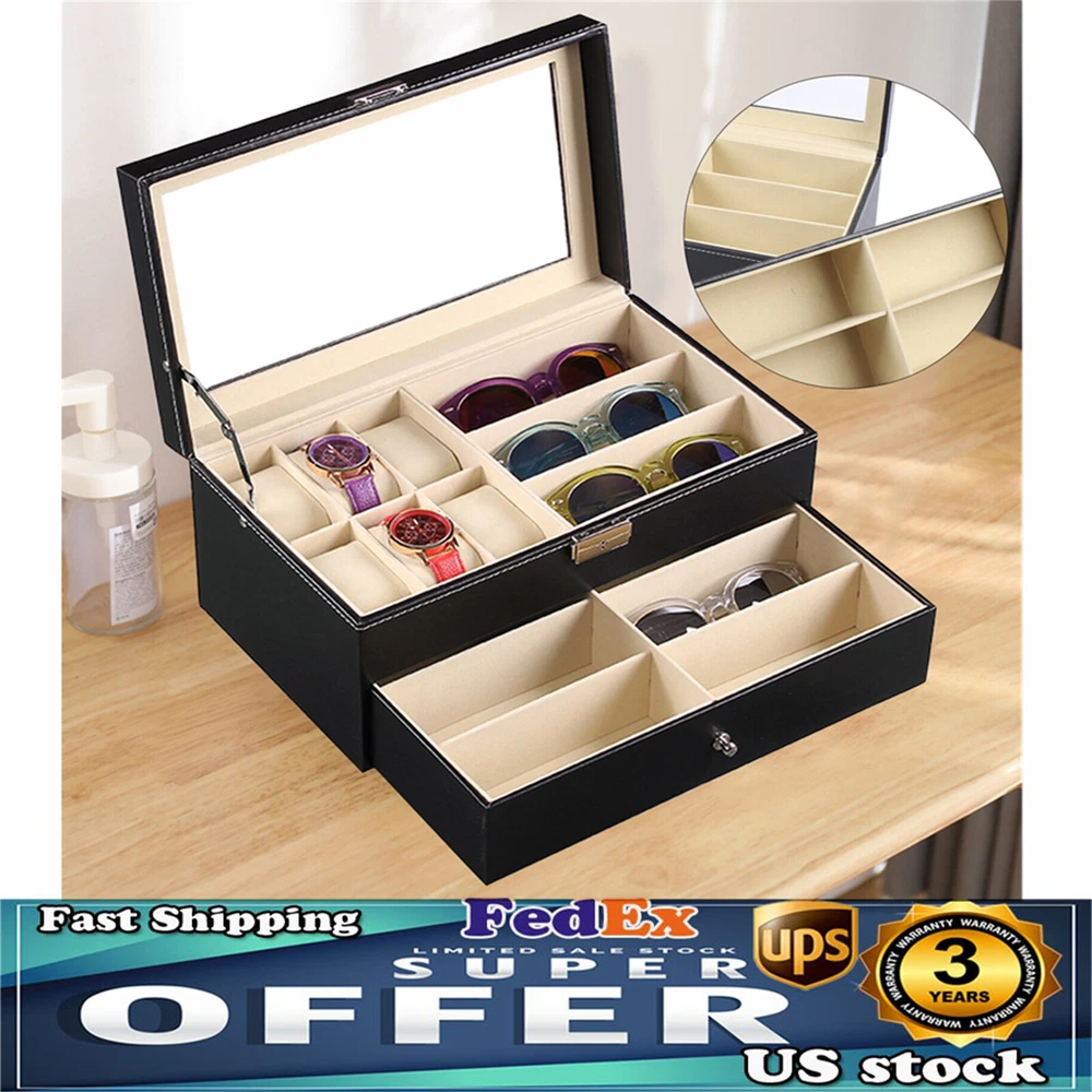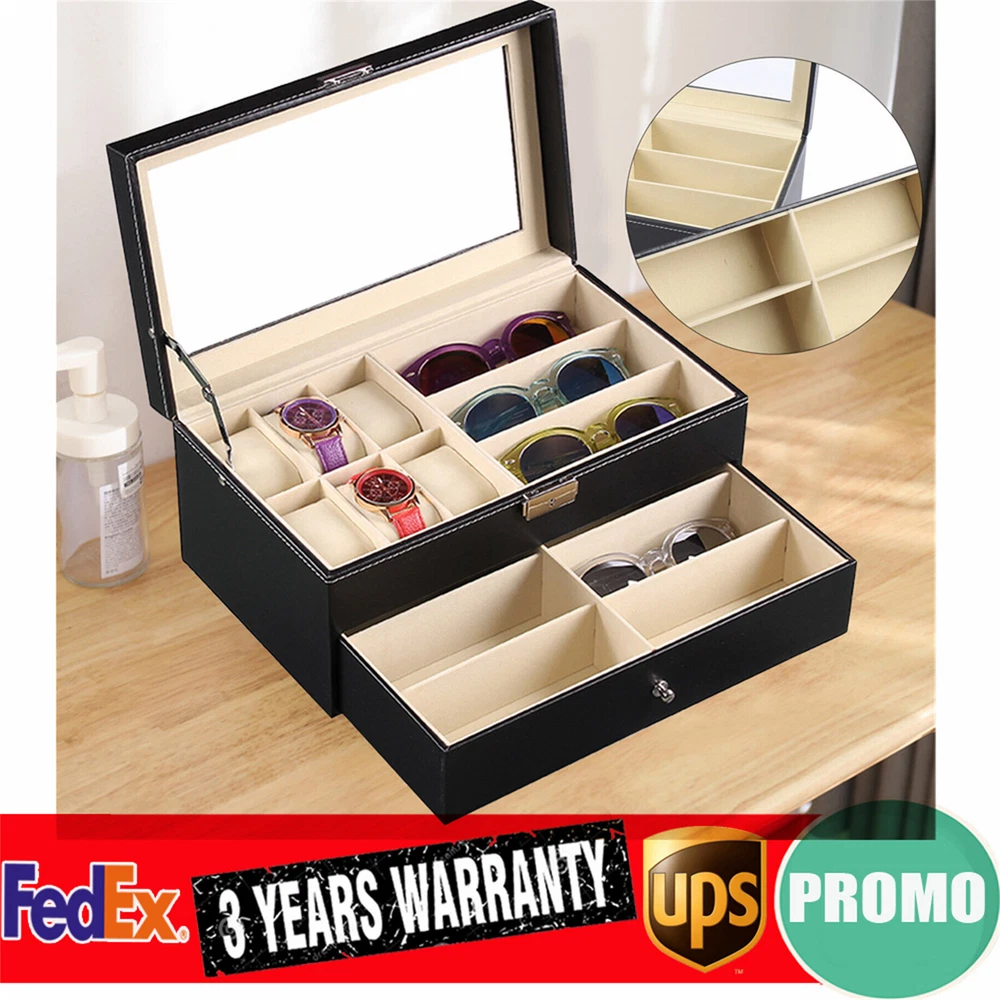9+6 Slots PU Leather Watch Case Watch Box Organizer Jewelry Display Drawer Gift ❤Welcome to yybshop06❤ Welcom to yybshop06 Product Features: - High Quality Pu Jewelry Box with Attractive Appearance,Simple Structure,Fine Workmanship and Sturdy Construction - Metal Lock,Black High Grade Pu Surface,Two Levels,First Level Includes 6 Removable Velvet Pillows and 3 Pairs of Glasses,Second Level Includes 6 Separate Compartments to Keep Your Sunglasses and Glasses Organized - It's Divided into Plenty of Unit Space Which Are Easy to Clean and Maintain,It Will Keep Your Watches and Eyeglasses & Sunglasses Securely - This Elegant Jewelry Case Allows You to Show Your Glasses and Watch and Other Jewelry While Protecting Them Away from Dust,Fingerprints,Scratches and Thieves - Clear Glass Top Gives You a Open View and You Can Find Your Favorite Treasure in Seconds with This Unique Jewelry Box.perfect for Home and Business Use,and a Wonderful Gift Idea. Product Specification: - Material: High Grade Pu ,Medium Density Fiberboard - Window: Glass - Color: Black - Product Dimensions (L X W X H): 13.18" X 7.67" X 6.1" (33.5 X 19.5 X 15.5 Cm) First Tier: - Watch Slot Size (L X W X H): 3.1" X1.8" X 1.5" (8 X 4.5 X 3.8 Cm);Slot Size (L X W X H): 6.2" X 2.3" X 1.6" (15.7 X 5.8 X 4.1 Cm) Second Tier: - Slot Size (L X W X H): 6.2" X 2.3" X 1.6" (15.7 X 5.8 X 4.1 Cm) Suits for Storing Watches,Glasses,Jewelry,Cuff Links,Spare Links,Rings,Earrings,Necklaces,Etc Packaging List: - 1 X Jewelry Display Box Description Payment Delivery details Terms of sales About us Contact us Payment We accept ebay payment 。 Fees such as import duties, taxes are not included in the item price or shipping costs. These charges are the buyer's responsibility. Delivery details Shipping: 2-9 working days to: USA Terms of sales We maintain high standards of excellence and strive for hundred percent customer satisfaction. Feedback is very important to us. We hope that you contact us immediately before you give neutral or negative feedback, so that we can address your concerns. It is impossible to address issues if we do not know about them! About us Your satis faction is our ultimate goal. We work hard to earn your trust and future business. Our certified technicians have tested each item before shipping. The unit comes with 1 year limited warranty on all manufacturing defects. a) If you receive a defective item, you may return it or ask for a discount. Please contact us within 14 days after you receive the package. b) What you returned must be intact and in its original packaging as re? u. Customer is responsible for shipping costs of the returned item. c) We will cover the cost of shipping back t with the shipping rate indicated in the registration page. We will send you a new unit or refund the full payment you paid. Thank you. Contact us Business Hour Business Hour: Monday To Friday: 8:30 AM to 5:00 PM (Beijing China time) Due to time zones, our reply to your questions may not be immediately. But within above working time, we will reply your email within 24 hours. If it's non-workdays, please kindly be patient and wait till Monday. Please contact us with ebay message. Please feel free to contact us if you have any questions. Monday To Friday: 8:30 AM to 5:00 PM (Beijing China time) Due to time zones, our reply to your questions may not be immediately. But within above working time, we will reply your email within 24 hours. If it's non-workdays, please kindly be patient and wait till Monday. Please contact us with ebay message. Please feel free to contact us if you have any questions.