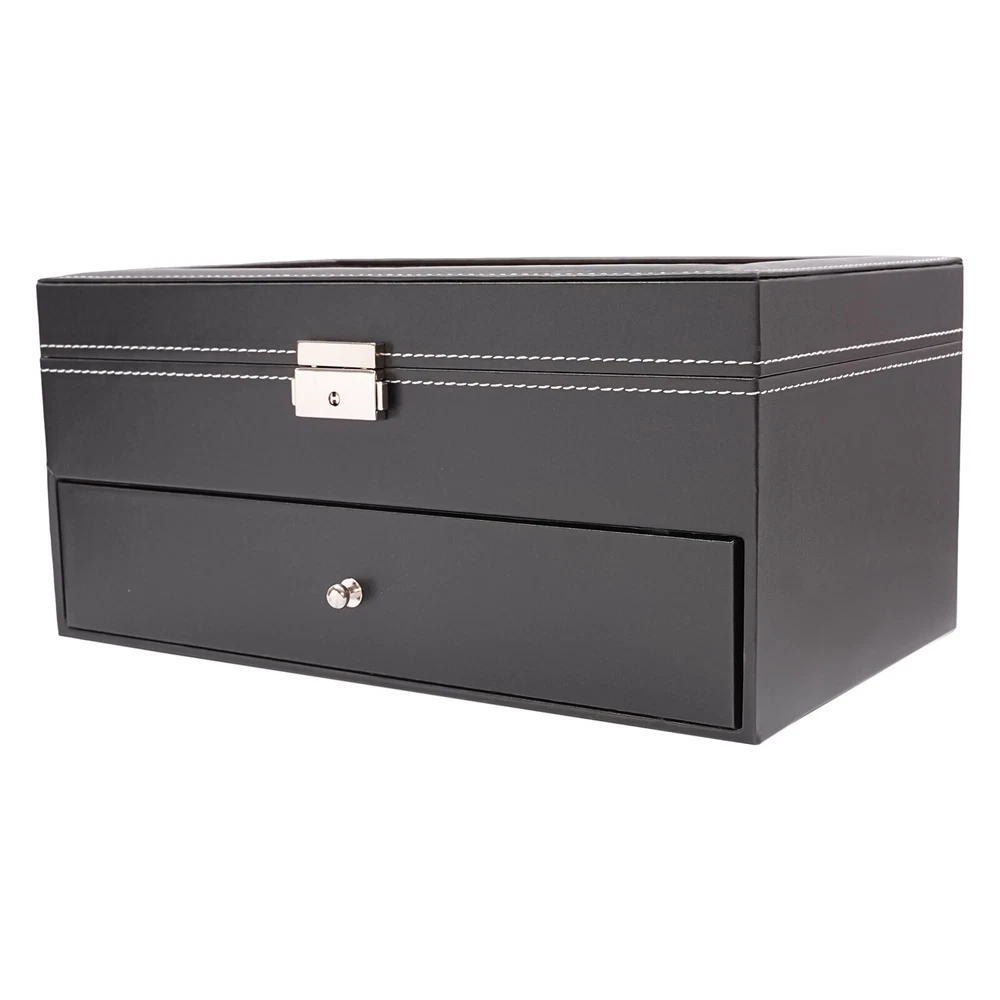 9+6 Slots PU Leather Watch Case Watch Box Organizer Jewelry Display Drawer Gift 9+6 Slots Watch Box Eyeglasses Jewelry Sunglass Storage Drawer Lockable Case Product Features: - High Quality Pu Jewelry Box with Attractive Appearance,Simple Structure,Fine Workmanship and Sturdy Construction - Metal Lock,Black High Grade Pu Surface,Two Levels,First Level Includes 6 Removable Velvet Pillows and 3 Pairs of Glasses,Second Level Includes 6 Separate Compartments to Keep Your Sunglasses and Glasses Organized - It's Divided into Plenty of Unit Space Which Are Easy to Clean and Maintain,It Will Keep Your Watches and Eyeglasses & Sunglasses Securely - This Elegant Jewelry Case Allows You to Show Your Glasses and Watch and Other Jewelry While Protecting Them Away from Dust,Fingerprints,Scratches and Thieves - Clear Glass Top Gives You a Open View and You Can Find Your Favorite Treasure in Seconds with This Unique Jewelry Box.perfect for Home and Business Use,and a Wonderful Gift Idea. Product Specification: - Material: High Grade Pu ,Medium Density Fiberboard - Window: Glass - Color: Black - Product Dimensions (L X W X H): 13.18" X 7.67" X 6.1" (33.5 X 19.5 X 15.5 Cm) First Tier: - Watch Slot Size (L X W X H): 3.1" X1.8" X 1.5" (8 X 4.5 X 3.8 Cm);Slot Size (L X W X H): 6.2" X 2.3" X 1.6" (15.7 X 5.8 X 4.1 Cm) Second Tier: - Slot Size (L X W X H): 6.2" X 2.3" X 1.6" (15.7 X 5.8 X 4.1 Cm) Suits for Storing Watches,Glasses,Jewelry,Cuff Links,Spare Links,Rings,Earrings,Necklaces,Etc Packaging List: - 1 X Jewelry Display Box Payment Delivery details Terms of sales About us Contact us Payment We accept ebay payment 。 Fees such as import duties, taxes are not included in the item price or shipping costs. These charges are the buyer's responsibility. Delivery details Shipping: 2-9 working days to: USA Terms of sales We maintain high standards of excellence and strive for hundred percent customer satisfaction. Feedback is very important to us. We hope that you contact us immediately before you give neutral or negative feedback, so that we can address your concerns. It is impossible to address issues if we do not know about them! About us Your satis faction is our ultimate goal. We work hard to earn your trust and future business. Our certified technicians have tested each item before shipping. The unit comes with 1 year limited warranty on all manufacturing defects. a) If you receive a defective item, you may return it or ask for a discount. Please contact us within 14 days after you receive the package. b) What you returned must be intact and in its original packaging as re? u. Customer is responsible for shipping costs of the returned item. c) We will cover the cost of shipping back t with the shipping rate indicated in the registration page. We will send you a new unit or refund the full payment you paid. Thank you. Contact us Business Hour Business Hour: Monday To Friday: 8:30 AM to 5:00 PM (Beijing China time) Due to time zones, our reply to your questions may not be immediately. But within above working time, we will reply your email within 24 hours. If it's non-workdays, please kindly be patient and wait till Monday. Please contact us with ebay message. Please feel free to contact us if you have any questions. Monday To Friday: 8:30 AM to 5:00 PM (Beijing China time) Due to time zones, our reply to your questions may not be immediately. But within above working time, we will reply your email within 24 hours. If it's non-workdays, please kindly be patient and wait till Monday. Please contact us with ebay message. Please feel free to contact us if you have any questions. Tips If you have any questions, please contact us! Brand Unbranded Country/Region of Manufacture Unknown Note Do not send to the Canary Islands Shipping notice Can not ship to Puerto Rico/Alaska/Hawaii Material High Grade PU Leather,Medium Density Fiberboard Size 13.18" x 7.67" x 6.1" (33.5 x 19.5 x 15.5 cm) Type BOX Color Black Capacity 9+6 Slots Year Manufactured 2010-Now Personalize No Vintage No Handmade No Personalized No UPC Does not apply MPN Does not apply On Feb 25, 2025 at 22:19:55 PST, seller added the following information: