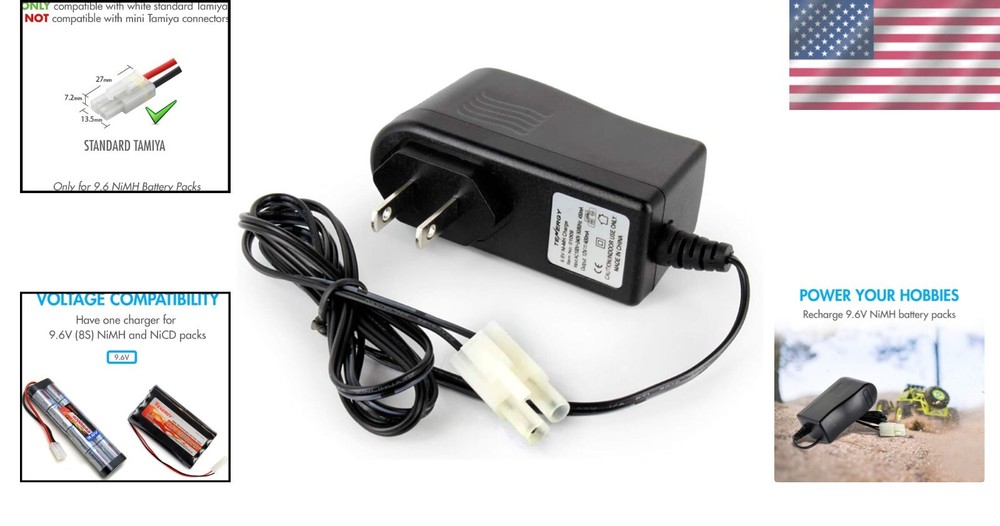Efficient 9.6V NiMH/NiCd Battery Charger - Tamiya Connector & AC Compatibility ‹ › ‹ › ‹ › ‹ › ‹ › ‹ › ‹ › Efficient 9.6V NiMH/NiCd Battery Charger Stay charged up with our powerful yet compact battery charger, specifically designed for NiMH/NiCd battery packs rated at 9.6V (8S). With a steadfast 400mA output, this charger ensures your remote-controlled toys and RC cars are always ready for action. Key Features: Compatibility: Designed exclusively for 9.6V NiMH/NiCd batteries. Note: Not compatible with LiPo batteries or airsoft batteries. Tamiya Connector: Equipped with a standard/large Tamiya connector for versatile connections. LED Indicators: Easy-to-read LED lights indicate charging status – red for charging and green for fully charged. Universal AC Input: Compatible with 100-240V AC input, making it perfect for international use. 12- : Backed by a 12- for peace of mind on your purchase. Why Choose Our Charger? This battery charger is an essential tool for hobbyists looking to power their RC cars and remote-controlled toys efficiently. Its simple interface and dual LED indicators eliminate any guesswork, allowing you to quickly know when your battery is fully charged and ready for use. Whether you're at home or on the go, the compact design ensures easy portability without compromising on quality. Don’t let a drained battery slow you down – select our Reliable 9.6V NiMH/NiCd Battery Charger today, and ensure your hobbies never miss a beat! Shipping Free & Fast Shipping - We offer free shipping to most of the USA with a normal delivery time of 3-7 days. However, due to the current situation, additional delivery time (up to 3 weeks) may be required for some items. Alternative Carriers - We may use alternative carriers (e.g. USPS, FedEx, UPS, etc.) to ensure your package arrives safely and on time. Due to the use of multiple carriers, we are unable to provide a tracking number automatically. Handling Time - Orders are processed and shipped within 1-2 business days of receiving cleared payment. Shipping Restrictions - Shipping to Alaska, Hawaii, Puerto Rico, Guam, and other US territories may incur shipping charges or delivery restrictions. Please contact us before ordering, or your order can be refunded/cancelled. State Restrictions - There may be restrictions based on your state of purchase. For example, certain items may not be shipped to California due to state regulations. Contact for Tracking Updates - If you require tracking updates or have any concerns about the delivery of your order, please feel free to contact us, and we will be happy to assist you. Return 30-Day Hassle-Free Returns - We want you to be completely satisfied with your purchase. If you are not, you can return the item within 30 days of receiving it for a full refund or exchange. Easy Return Process - To start a return, simply contact us and we will provide you with a prepaid return shipping label and detailed instructions. Restocking Fee - There are no restocking fees for returns. However, the buyer is responsible for return shipping costs if the return is not due to a seller's error. Refund Processing Time - Refunds will be processed within 5 business days of receiving the returned item in its condition. Payment We accept all major credit cards, PayPal, and Apple Pay for your convenience. Your payment information is secure and encrypted to ensure a safe and seamless transaction. Please complete your payment within 3 days of purchase to avoid any delays in shipping. Feedback Your feedback is extremely important to us. We strive to provide the best products and customer service possible. If you are satisfied with your purchase, please take a moment to leave us a positive review. If you have any concerns or issues with your order, please contact us before leaving negative feedback. We are committed to resolving any problems and ensuring your satisfaction. Contact Us If you have any questions or concerns, please feel free to out to our customer support team. You can contact us through the eBay messaging system. We are available Monday to Friday, 9:00 am to 5:00 pm EST, and we will do our best to respond to your inquiry within 24 hours. Buy it now and enjoy a pleasant shopping experience! MPN: RC_Battery_Charger Model: RC Battery Charger Compatible Chemical Composition: NiCd,NiMH Features: RC Battery Charger