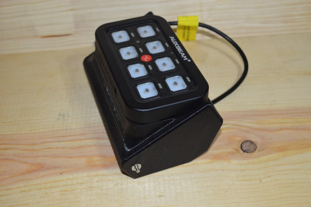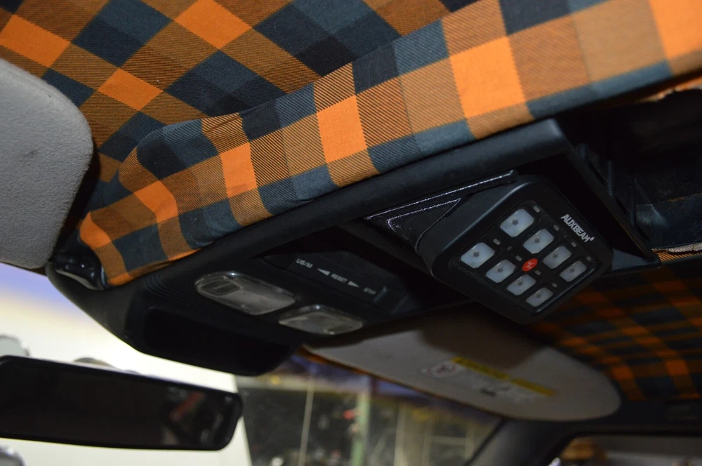 Fits 97-01 Jeep Cherokee XJ and 96-98 Grand Cherokee ZJ Replaces the garage opener section of the overhead console. Uses stainless fasteners to lock into place. Foam can be added to the top to give a tighter fit once pressed into place. Installation: 1. Remove Garage door opener panel 2. Slide mount in and tighten pivot screws, preferably after routing your wiring 3. Angle mount down to be able to access Mount screw holes. 4. Tighten minimum of 2 screws to hold in Auxbeam module included with purchase of Auxbeam. 5. Pivot the mount up and it snaps into place. If mount is loose, a piece of foam can be put under as a shim to tighten up the fit. Does not come with Auxbeam Included: 1 mount 2 Pivot screws 2 Pivot Nuts Made of PETG. Made in USA with USA materials