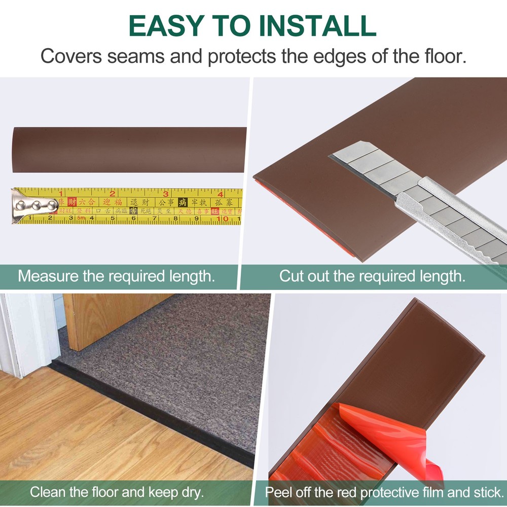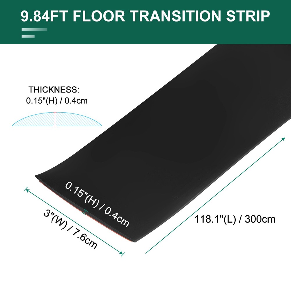 Document Advantage:- Made of PVC material, strong adhesion, good abrasion resistance and scratch resistance, durable and flexible.- Easy to install by peeling off the backing protective film, placing it in position, and sticking it firmly on the floor.- The gaps are between the flooring materials needs to be cleaned and dried before installation.- It is enough to be easily cut to any size you need, and quickly meet your different needs.- Easy to cover the floor tile gap(wood to tile/wood to wood/tile to tile).SpecificationMaterial: PVCColor: BlackSize: 118.1"(L) x 3"(W) x 0.15"(H)/300cm x 7.6cm x 0.4cmPackage Included: 1 pcs x Self Adhesive Floor Edging Trim StripApplications: Electronics, hardware tools, crafts, stationery, boards, cars, door frames, photo frames, etc.Note1. Due to the different monitor and light effects, the actual color of the item might be slightly different from the color shown in the pictures.2. Due to manual measurement, please allow a 1-3cm measuring deviation. 9.84Ft PVC Self Adhesive Door Transition Strip Carpet Edging Trim Black Advantage: - Made of PVC material, strong adhesion, good abrasion resistance and scratch resistance, durable and flexible. - Easy to install by peeling off the backing protective film, placing it in position, and sticking it firmly on the floor. - The gaps are between the flooring materials needs to be cleaned and dried before installation. - It is enough to be easily cut to any size you need, and quickly meet your different needs. - Easy to cover the floor tile gap(wood to tile/wood to wood/tile to tile). Specification Material: PVC Color: Black Size: 118.1"(L) x 3"(W) x 0.15"(H)/300cm x 7.6cm x 0.4cm Package Included: 1 pcs x Self Adhesive Floor Edging Trim Strip Applications: Electronics, hardware tools, crafts, stationery, boards, cars, door frames, photo frames, etc. Note 1. Due to the different monitor and light effects, the actual color of the item might be slightly different from the color shown in the pictures. 2. Due to manual measurement, please allow a 1-3cm measuring deviation. Hot Item Payment 1.We accept eBay payment . 2.Payment must be received within 7 business days of auction closing. Shipping 1.We ship to your eBay or Paypal address. Please make sure your eBay and Paypal address is correct before you pay. 2.Items will be shipped within 1-3 business day when we received payment. 3.Delivery time depends on destination and other factors. Description Policy 9.84Ft PVC Self Adhesive Door Transition Strip Carpet Edging Trim Black Advantage: - Made of PVC material, strong adhesion, good abrasion resistance and scratch resistance, durable and flexible. - Easy to install by peeling off the backing protective film, placing it in position, and sticking it firmly on the floor. - The gaps are between the flooring materials needs to be cleaned and dried before installation. - It is enough to be easily cut to any size you need, and quickly meet your different needs. - Easy to cover the floor tile gap(wood to tile/wood to wood/tile to tile). Specification Material: PVC Color: Black Size: 118.1"(L) x 3"(W) x 0.15"(H)/300cm x 7.6cm x 0.4cm Package Included: 1 pcs x Self Adhesive Floor Edging Trim Strip Applications: Electronics, hardware tools, crafts, stationery, boards, cars, door frames, photo frames, etc. Note 1. Due to the different monitor and light effects, the actual color of the item might be slightly different from the color shown in the pictures. 2. Due to manual measurement, please allow a 1-3cm measuring deviation. Hot Item Payment 1.We accept eBay payment . 2.Payment must be received within 7 business days of auction closing. Shipping 1.We ship to your eBay or Paypal address. Please make sure your eBay and Paypal address is correct before you pay. 2.Items will be shipped within 1-3 business day when we received payment. 3.Delivery time depends on destination and other factors.