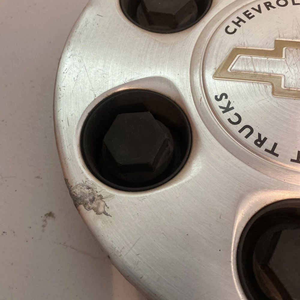 Free shipping to the lower 48!🇺🇸 Center cap has blemished and scratches as pictured. Add an extra touch of style to your Chevrolet with this genuine OEM wheel center cap, part number 15712387. Made of durable and lightweight machined plastic, this center cap features the iconic Chevrolet emblem. It is car wash safe and easy to install, making it the perfect addition to your vehicle's wheels. This center cap fits 99-06 Chevrolet models including Avalanche, Silverado 1500, Suburban, and Tahoe. It can be placed on any wheel, whether it's rear, left, front, or right. The silver color adds a sleek and modern look to your vehicle. #85