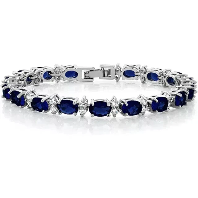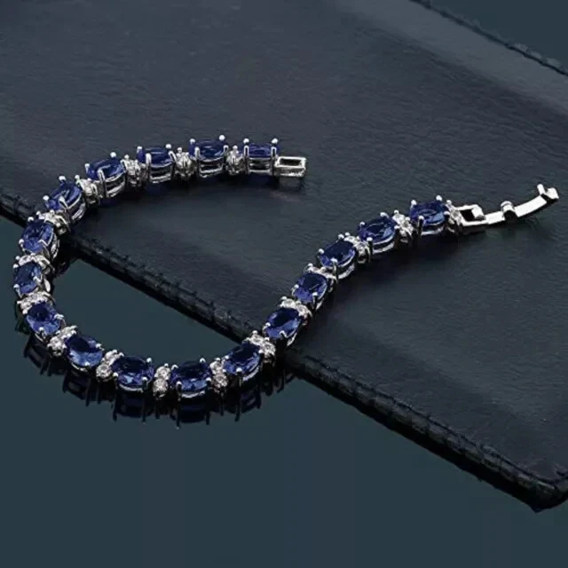 9Ct Oval Cut Simulated Sapphire Women's Tennis Bracelet 14K White Gold Plated