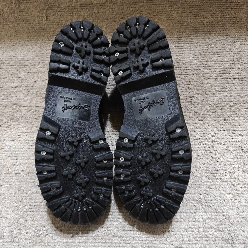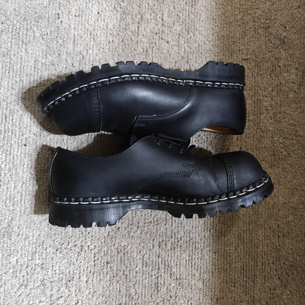 Pair of Gibson shoes. They have been cleaned, the sole did have some seperation but a cobbler has reglued them. Despite being steel toe. These are not rated by the ASTM. It is merely decorative. The shoes have been cleaned and brushed and to be clear. It states that the shoe is a UK8, which is a US9.
