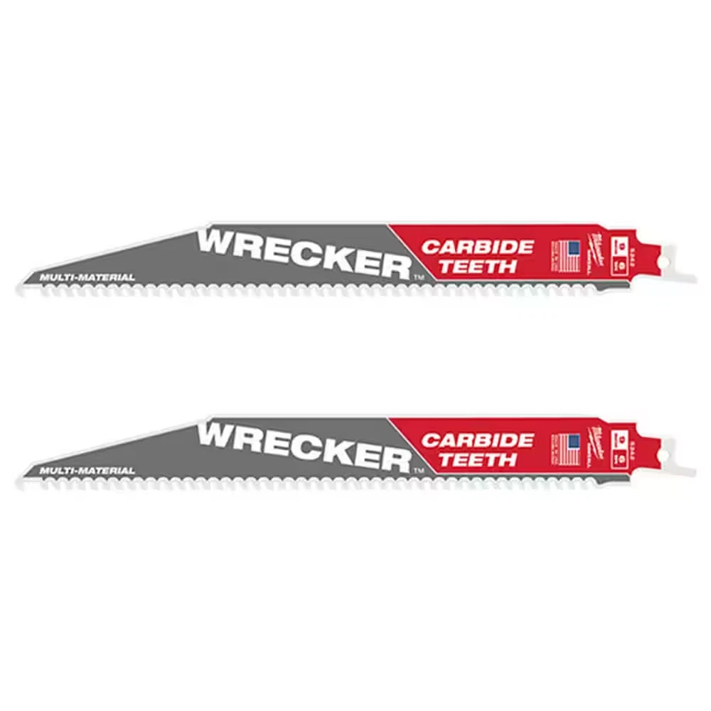 Fast Shipping On All Items 30 Days Money Guarantee Customer Support Excellent Service 100% Satisfaction Satisfaction Guaranteed 9 In. 6 TPI WRECKER Carbide Teeth Multi-Material Cutting SAWZALL Reciprocating Saw Blade (2-Pack) Specification Color Family White Demolition Yes Material Cut Multi-Purpose Number in Package 2 Number of Teeth 52 Power Tool Accessory Type Reciprocating Saw Blade Returnable 90-Day Saw Blade Material Carbide Teeth Per Inch 6 Tools Product Type Power Tool Blade Length (in) 9 in Blade Width (in) 1/20" 9.0 inches. Item Description The most versatile carbide blade on the market Longer life vs bi-metal blades in clean wood, plastics, and metal Designed to cut materials found in demolition and remodeling The Milwaukee 9 in. 6 TPI WRECKER with Carbide Teeth SAWZALL Blade is the most versatile carbide blade on the market. These multi-material SAWZALL blades offer up to 50X more life verses bi-metal reciprocating saw blades available today. The Milwaukee WRECKER blade offers a 6 TPI design, which allows for cutting into a wide variety of materials from clean wood to cast iron for quick demolition and remodeling work. The Fang Tip Design allows for faster plunge cuts into wood materials. Milwaukee Carbide Teeth products allow users to cut longer, cut more and cut faster than other carbide-teeth blades on the market. About us We offer the best prices around on high quality products. Our E-store includes media such as books, movies, music and games while offering electronics, toys, sporting apparel, clothing, tools, general home, garden items and more. Shipping We are always working hard to ensure your package arrives as soon as possible. Please understand that some factors like weather, high postal traffic, and the performance of shipping companies are outside of our control. We offer free shipping to the lower 48 states and ship within 2-3 business days of payment, usually sooner. We do not accept P.O. Boxes. Please provide a physical address. For shipping outside of the continental USA, we only use eBay's Global Shipping Program.The item is shipped to KY and then sent to the rest of the world. International customers are responsible for all duties and taxes. Continue to check out to calculate costs for shipping the item to your country. Messages regarding eBay's Global Shipping Program MUST be directed at eBay EXCLUSIVELY. Returns We offer a 30-Day Return Policy on items in which you are not completely satisfied with. You have the option of a full-refund or an exchange of the item. No returns are available on items shipped outside of the USA Satisfaction We try over very best to make sure every customer is completely satisfied. If there's a problem, message us! We're happy to help. Payment Options Shop With Confidence