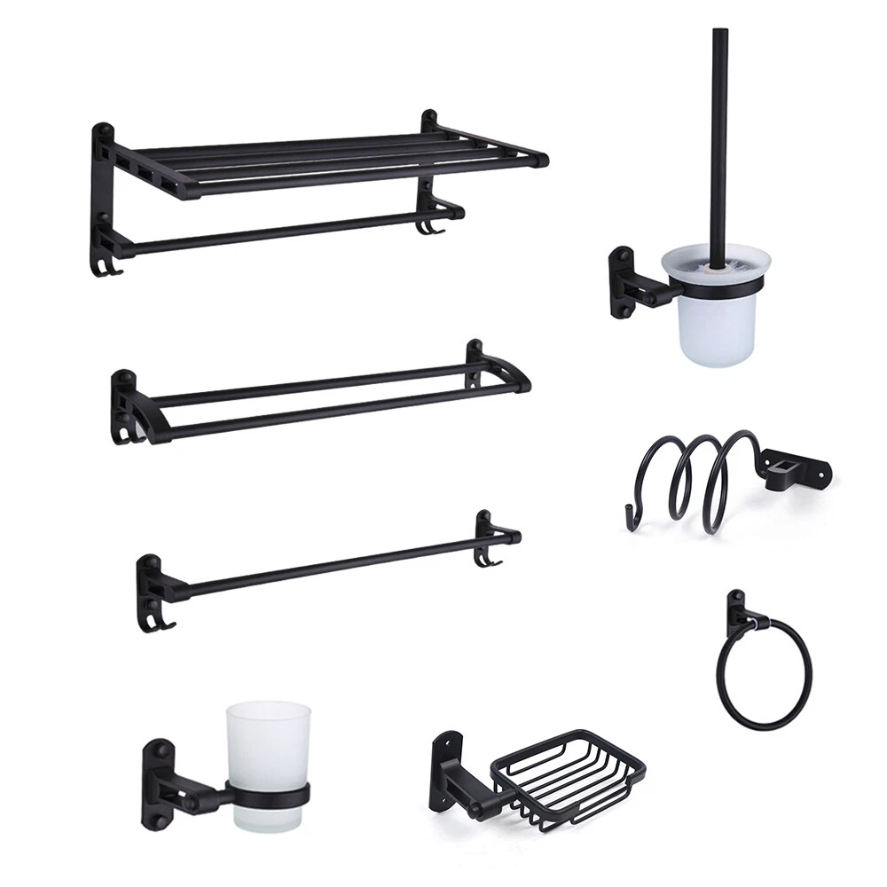 9PCS Bath Accessory Set Wall Mounted Bathroom Hardware Black Aluminum Towel Bar Description~~ HG-ZTCYT-3012 Description: Type: 9PCS bathroom set Style: modern Material: aluminum Color: black Craft: Hand-drawing Feature: ☆ High quality aluminum material, anti-oxidation treatment, corrosion resistance, not easy to rust ☆ Simple shape, beautiful appearance, not easy to fade ☆ Simple installation, hook design is convenient for storing clothes, towels and other items, making cluttered rooms neat and orderly ☆ Multi-layer electroplating, durable and strong Scope of application: bathroom, Toilet etc. Installation method: Punched Package includes: ①1 * Multifunctional shelf (59*19*21cm) ②1 * Double rod (59*8.5*11.2cm) ③1 * Single pole (59*8.5*7.5cm) ④1 * Towel ring (16cm) ⑤1 * Hair dryer rack (15*11*7.5cm) ⑥1 *Wash cup (9.5cm) ⑦1*Toilet paper holder (16cm) ⑧1*Toilet brush holder (35*11.5cm) ⑨1*Soap holder (17*7.5cm) Our Gauranteen: 1.We Provide you with the verious ways of shipping,you can choose the best way to ship to you. 2.If the items unfortunately don't work,or work badly,we have our engineers to serve you the professional help,otherwise we have many convinient ways to return the items.Plz pay attention to our Returning policy. 3.If you don't receive our items,plz feel free to contact US,we will deal it as soon as possible. 4.If you meet any other questions,Plz feel free to contact US. 5.For all problems,We will deal it in 1 day noramally(except Vacational days),not more than 3 days. tu1 Payment Delivery details Terms of sales About us Contact us Payment We accept ebay payment 。 Fees such as import duties, taxes are not included in the item price or shipping costs. These charges are the buyer's responsibility. Delivery details Shipping: 2-9 working days to: USA Terms of sales We maintain high standards of excellence and strive for hundred percent customer satisfaction. Feedback is very important to us. We hope that you contact us immediately before you give neutral or negative feedback, so that we can address your concerns. It is impossible to address issues if we do not know about them! About us Your satis faction is our ultimate goal. We work hard to earn your trust and future business. Our certified technicians have tested each item before shipping. The unit comes with 1 year limited warranty on all manufacturing defects. a) If you receive a defective item, you may return it or ask for a discount. Please contact us within 14 days after you receive the package. b) What you returned must be intact and in its original packaging as re? u. Customer is responsible for shipping costs of the returned item. c) We will cover the cost of shipping back t with the shipping rate indicated in the registration page. We will send you a new unit or refund the full payment you paid. Thank you. Contact us Business Hour Business Hour: Monday To Friday: 8:30 AM to 5:00 PM (Beijing China time) Due to time zones, our reply to your questions may not be immediately. But within above working time, we will reply your email within 24 hours. If it's non-workdays, please kindly be patient and wait till Monday. Please contact us with ebay message. Please feel free to contact us if you have any questions. Monday To Friday: 8:30 AM to 5:00 PM (Beijing China time) Due to time zones, our reply to your questions may not be immediately. But within above working time, we will reply your email within 24 hours. If it's non-workdays, please kindly be patient and wait till Monday. Please contact us with ebay message. Please feel free to contact us if you have any questions. shipping notice Can not ship to Puerto Rico,Alaska/Hawaii Features High quality W/ warranty! * Feature * Creative Design,Durable Material,Beautiful Appearance Department Adults Capacity AS DESCRIPTION SHOWN Product Line AS DESCRIPTION SHOWN Material Aluminum Type Bath Rack Suitable For Sink Style Modern Mounting Wall Mounted, Hanging Craft Hand-drawing Application bathroom, Toilet etc Installation method Punched Model 9PCS bathroom set Color Black Room Any Room, Bathroom Set Includes Soap Dish, Toilet Brush Holder, Toilet Paper Holder, Towel Ring, Multifunctional Shelf, Double Rod, Single Pole, Hair Dryer Rack, Wash Cup Country/Region of Manufacture China Number of Items in Set 9 Theme modern, Hand-drawing Brand SENDERPICK MPN Does not apply