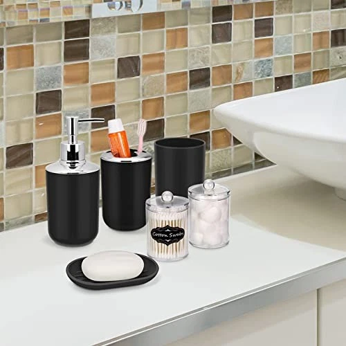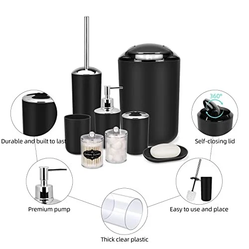 Love this sleek 9-piece bathroom set! The black design looks modern and elegant, and it has everything—toothbrush holder, tray, trash can, and more. Sturdy plastic, easy to clean, and perfect for organizing my space. Fast shipping, great quality for the price. Highly recommend for a clutter-free bathroom!