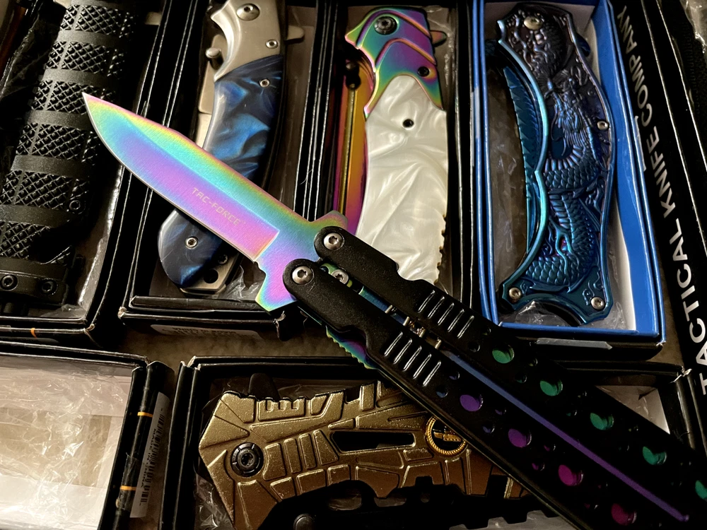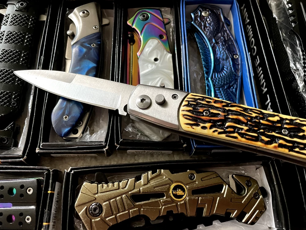 Lot of 9 mixed knives, including hunting, tactical, folding, pocket, fixed blade, survival, and EDC knives. These knives come in various brands and styles, making them a great choice for collectors, resellers, outdoor enthusiasts, or anyone looking to expand their knife collection. All knives are NEW and in GOOD condition, ensuring quality and reliability. Each knife in this lot typically costs between $20 to $30 , offering excellent value for anyone looking to save money on premium knives. Whether you're into camping, hunting, fishing, self-defense, survival, or everyday carry (EDC) , this set has something for you. This is a great deal for anyone looking to resell, start a collection, or stock up on quality knives. Fast shipping ensures you'll receive your knives quickly. Sold as-is with no returns. Don’t miss out—grab this knife lot before it's gone!