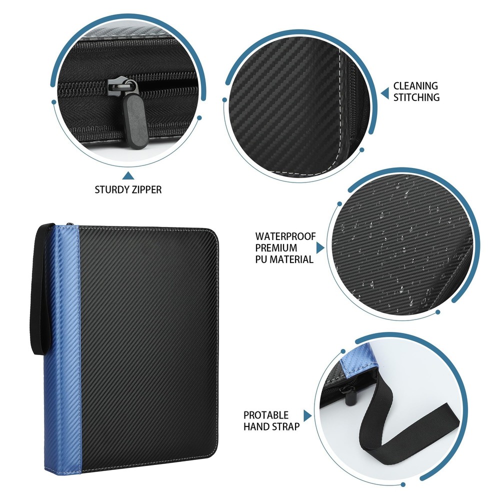 9 pocket Trading Card Binder with 50 Pages Sleeves Holder 900 Cards HOLDS A TOTAL OF 900 CARDS - Designed with both functionality and style in mind, our Album holder trading card sleeve is a must-have accessory for any dedicated card collector and player. This 9 pocket card binder has 50 double sided pages that can hold up to 900 cards, providing the perfect balance of protection and accessibility. SUPERIOR PROTECTION AND ORGANIZATION - The trading card binder features a durable and waterproof PU material and sturdy construction that can withstand everyday use, inner side made from soft black velvet to provide superior protection and organization. Our card binder has good dust-free and moisture resistance for your prized PKMN card collection, ensuring that your cards stay safe, secure, and in pristine condition. 3-RING BINDER WITH 50 PAGES SHEETS - The 3-ring design is convenient for you to add or remove sheets at will. 9-Pocket binder with 50 pages of sheets can hold up to 900 cards, providing plenty of space to get all your cards organized. SUITABLE FOR MULTIPLE CARD - Our Card Binder for trading cards is compatible with standard sized cards such as football cards, baseball cards, playing cards, mini-Polaroid photos, MTG Card Game, Cards Against Humanity, Unstable Unicorns Base Game, Monopoly Deal Cards and of course, Yu-Gi-Oh Card Game, Skylanders and much more. IDEAL GIFT FOR TCG LOVERS - Looking for the perfect gift for the trading card game enthusiast in your life? Look no further than our premium trading album display holder. Handle straps design can carry around to show off cards to your friends.