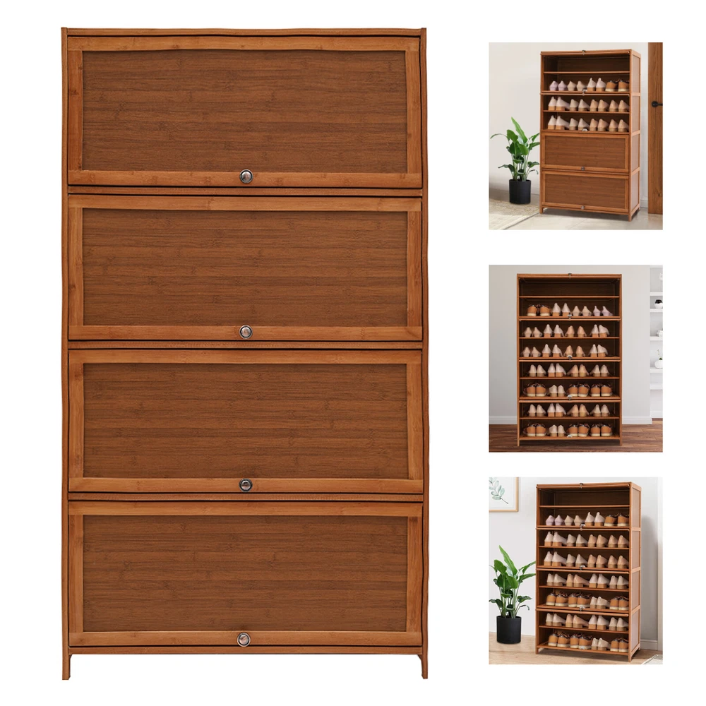 a stylish and organized space for your shoes! The bamboo construction is sturdy, and the flip doors keep everything neat while adding a modern touch. Love how it maximizes storage without taking up too much room—perfect for small spaces. The extra open shelf is a bonus for displaying decor or quick-access items. Highly recommend for anyone looking to declutter!