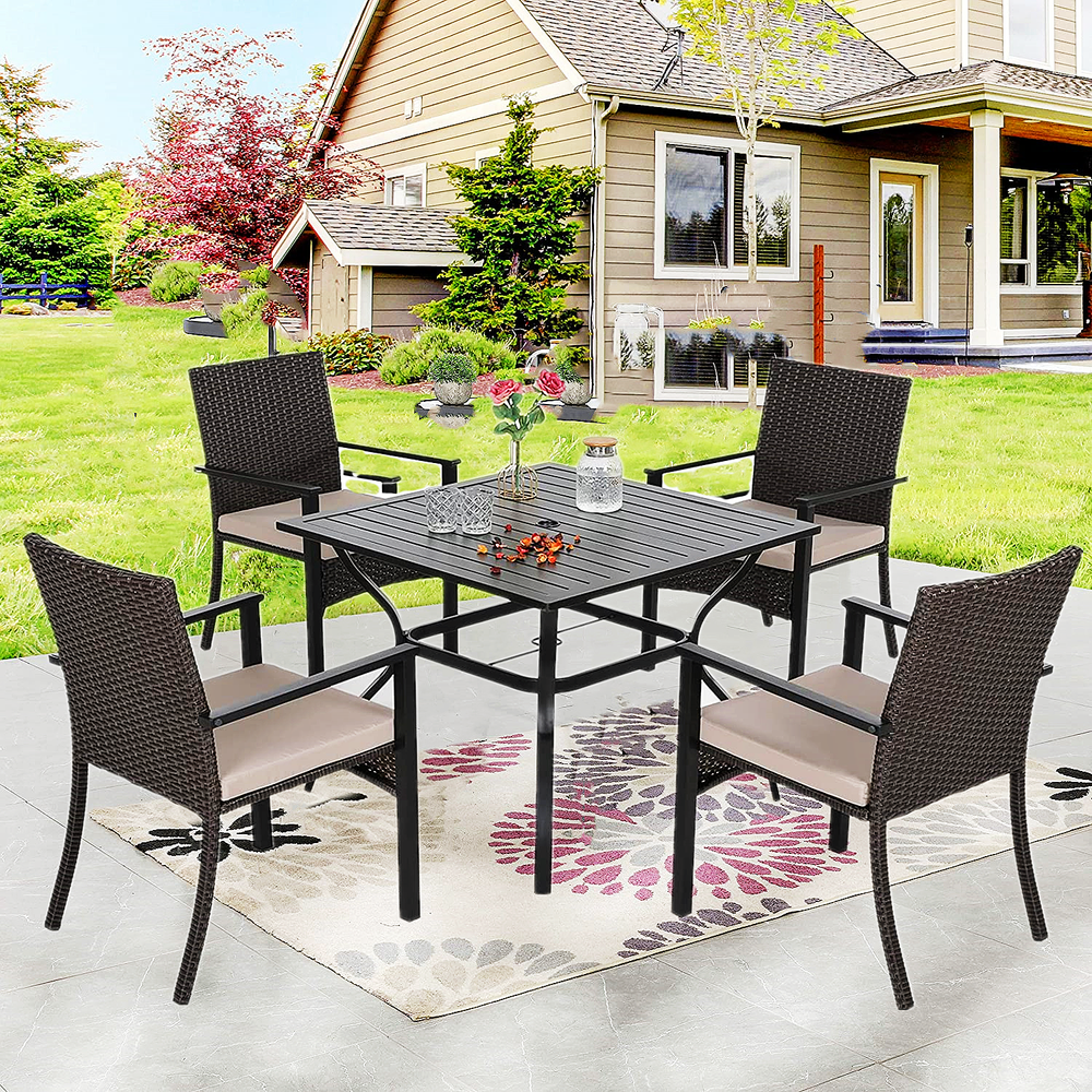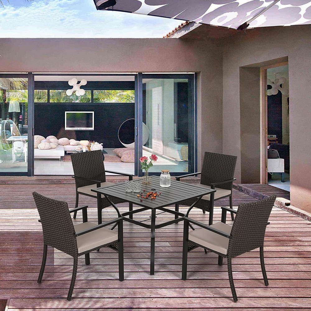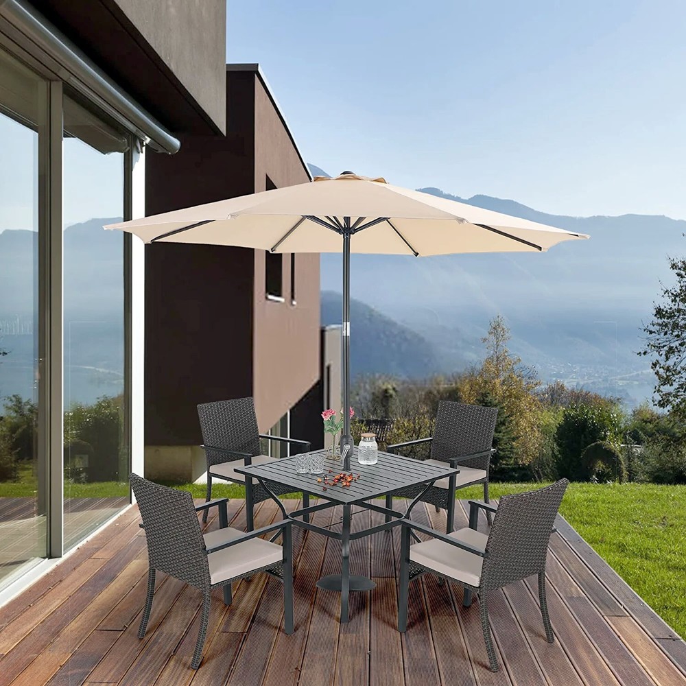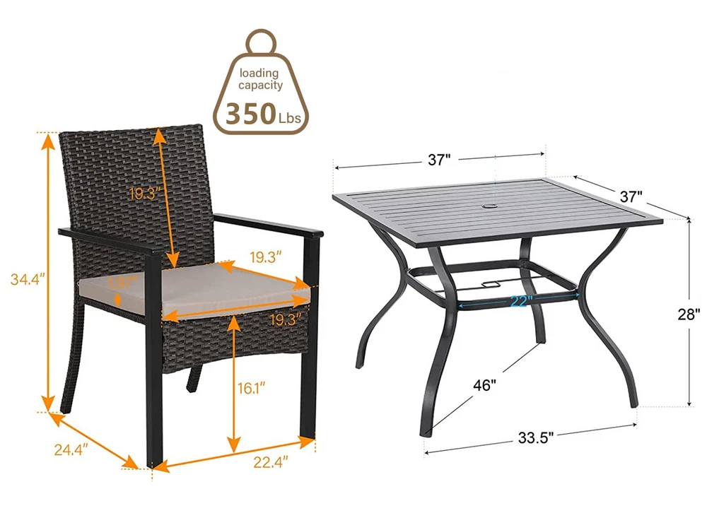 Patio Chair Patio Table Set of 2 Set of 3 Set of 5 Set of 6 Set of 7 Set of 8 Set of 9 Auction Other MENU Store Support Set of 2 Set of 3 Set of 5 Set of 6 Set of 7 Set of 8 Set of 9 Auction Other ▌ PRODUCT DETAILS: 【Brand】:PHI VILLA 【Color】:Chairs: Dark Brown Rattan + Beige Cushion Table: Black 【Size】:Chairs: 34.4'' H x 24.4'' L x 22.4''W; Seat Height: 16''; Backrest: 19.3'' Table: 37'' L x 37''W x 28''H 【Material】:Rattan + Metal 【Ship-way】:Ship by FedEx or UPS 【Feature】: E-coating / with umbrella hole 【Capacity Weight】: 350 lbs 【Warranty】: 2 Year 【Package including】:Four Chair + One Table + One Umbrella + Accessories More Items About Us Welcome to our eBay store. We sale products about Home Garden,Home Organization,and Office Products. We are committed to your good buying experience from us. If you meet some problems or further questions,even some dissatisfaction with us,please give us a chance to solve the problem and offer you the best service,before leaving us a negative feedback. Meanwhile if you are satisfied with our products and service,please leave positive feedback with Four 5-Stars. Payment 1. We accept payment methods : PayPal, Payoneer, Visa, Master Card, American Express , Discover and Credit Card, etc. 2. We appreciate prompt payment and look forward to your business in the future. 3. Unpaid item will be filed without receiving payment in 7 days from listing ended. 4. If for some reason there is any issue with the purchase,please contact us prior to leaving feedback,and we will be glad to work with you to have it resolved. Shipping 1. We take great care packaging every item to ensure safe quality shipping. 2. We ship UPS/USPS/FedEx depending on your location and the shipping method you have chosen. 3. Most shipments are sent out within 1-3 business day after payment is confirmed or cleared,unless stated on otherwise in the listing. 4. Packages are not shipped on Saturday and Sunday. Transit time varies and depends on the carrier,we cannot be held responsible for delays caused by carriers. 5. Please make sure to provide the correct shipping address when placing your order,orders will be shipped out to the shipping address provided by eBay. 6. Shipping time by eBay is estimated and not guaranteed and is subject to change especially during peak periods. 7. Orders shipping to Hawaii,Puerto Rico,Guam or Alaska may not select the Free shipping option for this item,if free shipping is selected for one of these destinations we reserve the right to cancel your order. Returns 1. We offer a 30 day return policy on all items.(Unless stated otherwise in the listing). 2. All returns must be in original condition and must include the original packaging and content intact. 3. Returns should be packed in proper packaging to avoid damage to the item or it original packaging. 4. For any return request please contact our Customer Support by eBay Messages and you will be assigned an RMA number and instructions on how to proceed with your return. 5. Please allow 3-5 business days after we receive your package to process your return. 6. Any returns that violate this return policy will not be accepted and will be sent back at customers’ expense. Contact Us 1. If you have any questions or concerns about the product or the auction,please contact our customer service department via email or send us message on eBay my messages. We will give you a response in 24 hours. 2. All emails will be responded to within 12-24hours.