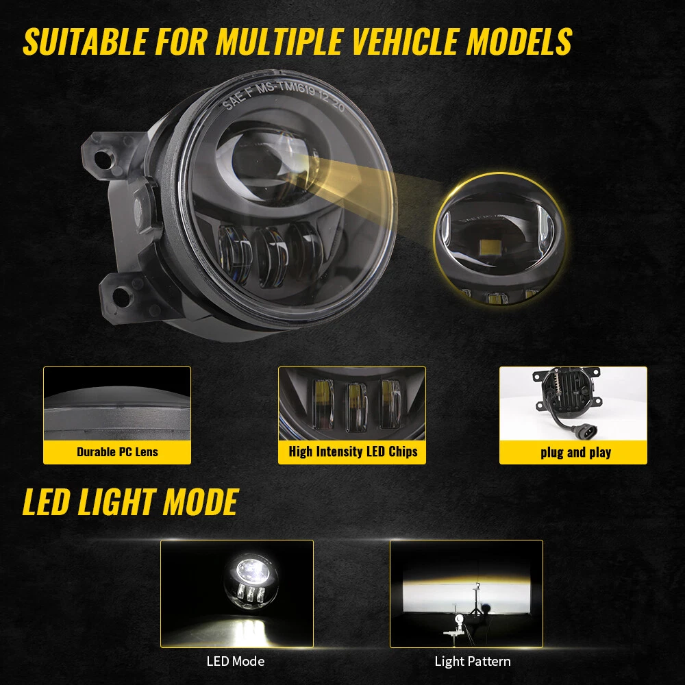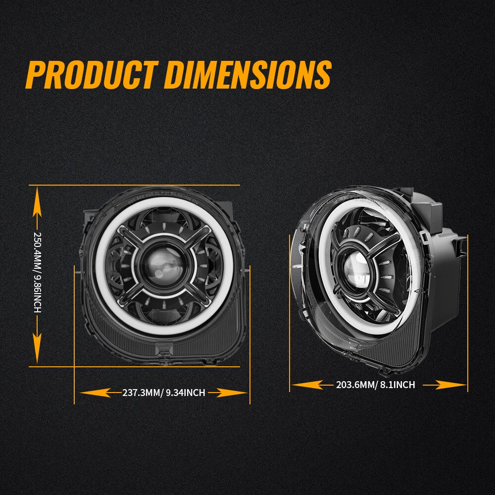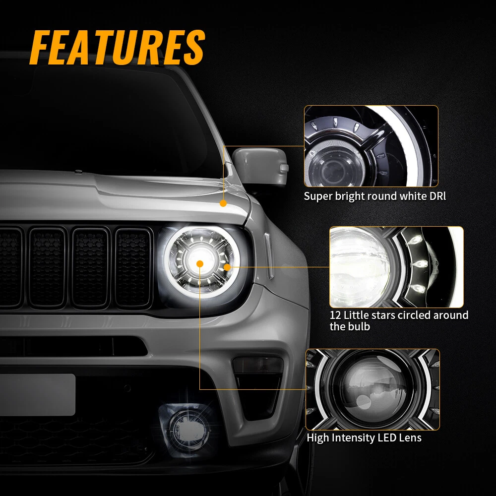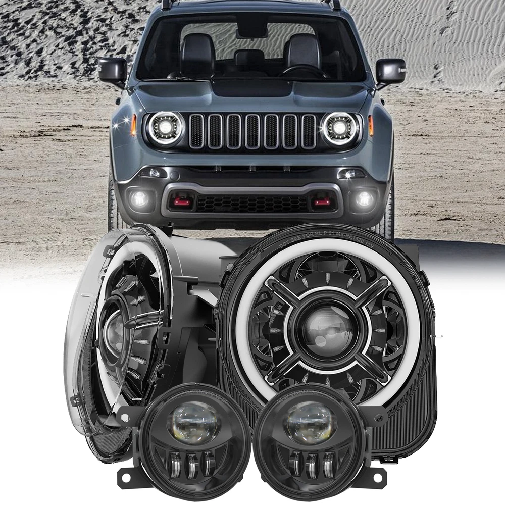9inch LED Halo Headlights +LED Fog Lights Assembly For Jeep Renegade 2015-2018 FITMENT For Jeep Renegade 2015-2021 9 Inch DOT Approved LED Headlights SPECIFICATIONS Height: 250.4mm/ 9.86inch Width: 237.3mm/ 9.34inch Depth: 203.6mm/ 8.02inch Color Temperature: 6000K Voltage: DC 12V Power:50W@High Beam, 30W@Low Beam Lumens:5000lm@High Beam, 2400lm@Low Beam Position lamp:3.9W Outer Lens Material: PC Outer Lens Color: Clear Housing Material: Die-cast Aluminum Housing Color: Black DESCRIPTION DOT Compliant-- The DOT-compliant headlight lights guarantee your lights are Compliant in the United States Department of Transportation for use in the U.S. & Canada to secure the safety of others. Exclusive Latest Design Headlights-- 12 starry and “X” design with Halo ring. Projector and reflector combination, ensure the lights source pass through the cover in high transmission rate, keep the light steadier concentrated. More brighter 3 times than stock halogen bulbs or other similar led headlights. Provides you the best driving experience. Super Brightness-- High Beam@2600LM Low Beam@1400LM Pure White DRL Daytime Running Lights for 9 Inch LED headlight. Built-in antiflicker harness to avoid any flicker issues. Sharp cut-off line with perfect halo beam pattern gives off a more even light, NOT blind other drivers while providing the brightest and widest vision. High Quality & Durability-- Better Waterproof with 3 rebreather valves on the back to avoid fog get inside the headlights. Die-cast Aluminum Housing and Anti-scratch Polycarbonate lens will resist the test of time up to 50,000 hrs. 4" Round LED Fog Lights SPECIFICATION Diameter: 91.8mm/ 3.61 inch Depth: 76.9mm/ 3.03 inch Color Temperature: 6000K Voltage: 12V DC Power: 27W Lumen:1200lm Outer Lens Material: PC Housing Material: Die-cast Aluminum Housing Color: Black DESCRIPTION Durable Construction-- The steady housing is made of strengthened PC lens and Die-cast aluminum that the lifespan is more than 50,000 hours which it's strong enough to deal with all kinds of bad conditions. Excellent Heat Dissipation System-- Die-cast aluminum alloy housing can efficiently dissipate more heat and keep cool, make the lamp lifespan that more than 50,000hrs; IP waterproof 67 rating ensures all-weather dependability. Easy Installation-- Just Plug and Play. Complete set fog Lights are designed to simply plug into your existing wiring without any cutting or drilling. Safe Driving-- The response speed of LED lights is faster than halogen lights, and it have ultra-high brightness and ultra-wide field of view, so the driver can drive freely in the dark without worrying about driving problems caused by the darkness of the road. PACKAGE INCLUDED 2pcs LED Fog Lights 2 pcs 9 Inch LED Headlights with Daytime Running Light Payment Shipping Returns Contact us Feedback Payment Payment methods : Payment is expected within 7 days of auction close. Unpaid Items will be forfeited per eBay . Immediate payment needs to be processed for items with Add to Cart option so that any promotional discounts can be applied to your order immediately. International Buyers – Please Note: a) Import duties, taxes and charges are not included in the item price or shipping charges. These charges are the buyer's responsibility. b) Please check with your country’s customs office to determine what these additional costs will be prior to bidding /bu ying. Shipping 1.All items will be shipped to your eBay Address .Please update your latest address when you check out,and please make sure to provide us with correct,precise and detailed shipping address. 2.If your shipping address and the item location both are US, it will be shipped by USPS or UPS. All items will ship within 1-2 business days after the we receiving clear payment. 3.Service transit time is provided by the carrier. Transit times may be a little delayed during holiday season. 4.International order will be sent from China within 3 business day after the we receiving clear payment. ---For International Orders. Both are the same products and same warranty. Duties and taxes may apply. Please check with your country's custom and eBay policy for more information. 5.Where is my tracking number? Please log on your account, click "my eBay"-->"my summary", or open your email box and find the shipping notification email. Returns Our 30 days Satisfaction Guarantee assures our customers that they will receive all orders promptly and exactly as described. In addition, we offer FREE RETURNS for US buyers. It allows customers to return faulty and unused products for any reason within 30 days from the date of purchase. *Please contact us first before you sent a return request* The seller is responsible for all return shipping, including those due to customer errors or defective items. 1) If you receive an item that is incorrect, damaged, defective or not as described, please contact us for a partial/full refund or replacement. 2) If you want to return the item, please contact us within 30 days after receiving the package. 3) If you open a return request ,please select the reason for return: Doesn't fit/Changed my mind/Just didn't like it/Order by mistake. 4) We provide the 1 year of product warranty. If your product have quality problem within the warranty period, please contact us to provide repair or replacement services to you. Note: Return products must also be in its original condition: including box, packaging and all other accessories Contact us Our Working Time:(GMT+8)Monday to Friday,9:00-18:00. Have Question or Problem? Please contact us first! 1. We will reply you within 24 hours once we receive your email during business days. There will be some delay on response if you send message or E-Mail on weekend. 2. Describe your question clearly. We have a very professional and attentive customer support team. We will give you the best solution by our great communications. 3. We have always been trying to provide the best service and reliable pro