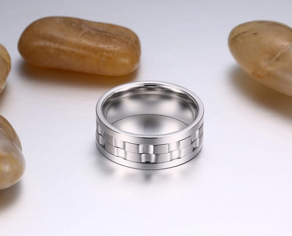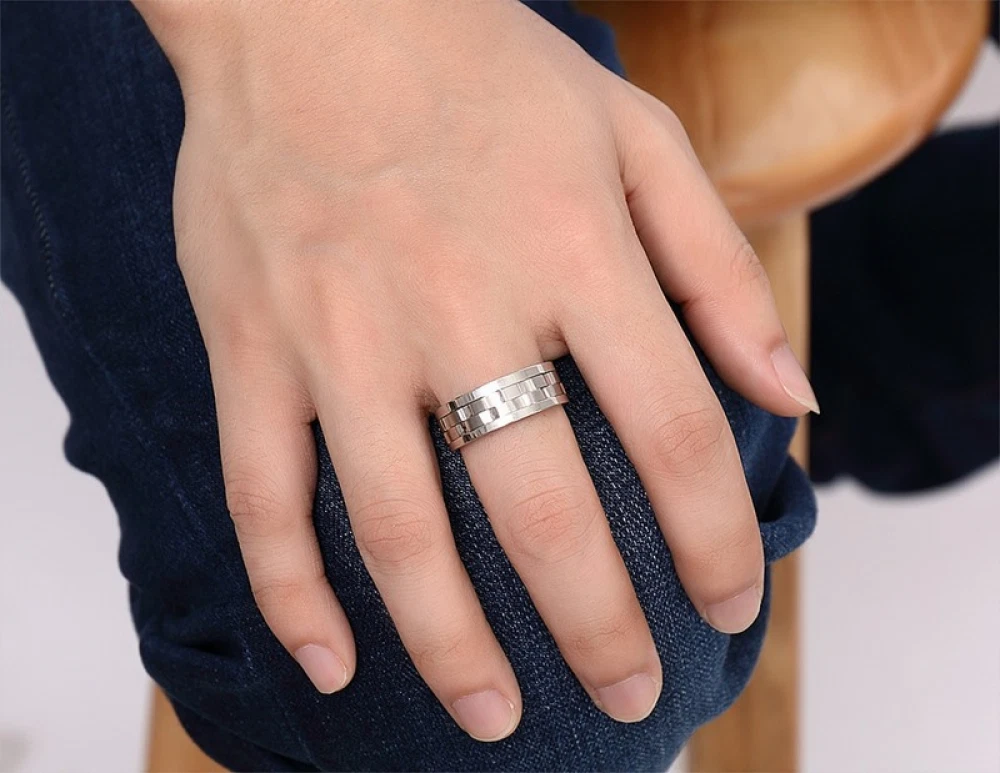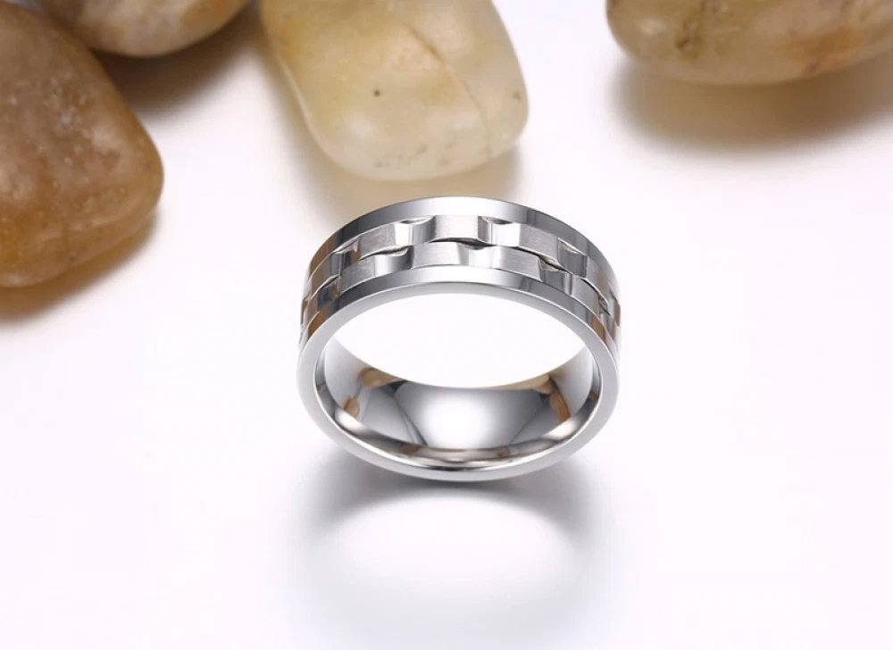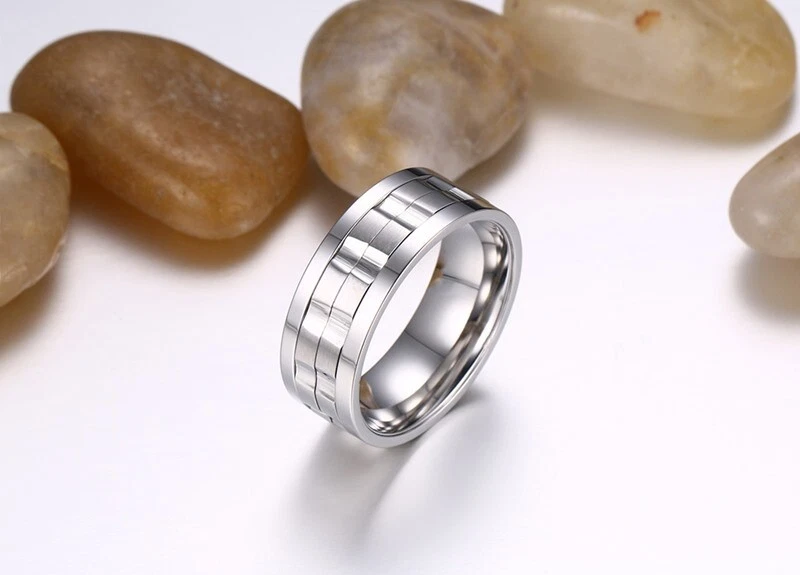 9mm Rotatable Pressure Relief Men's Titanium Steel Ring Fashion Jewelry Gift US