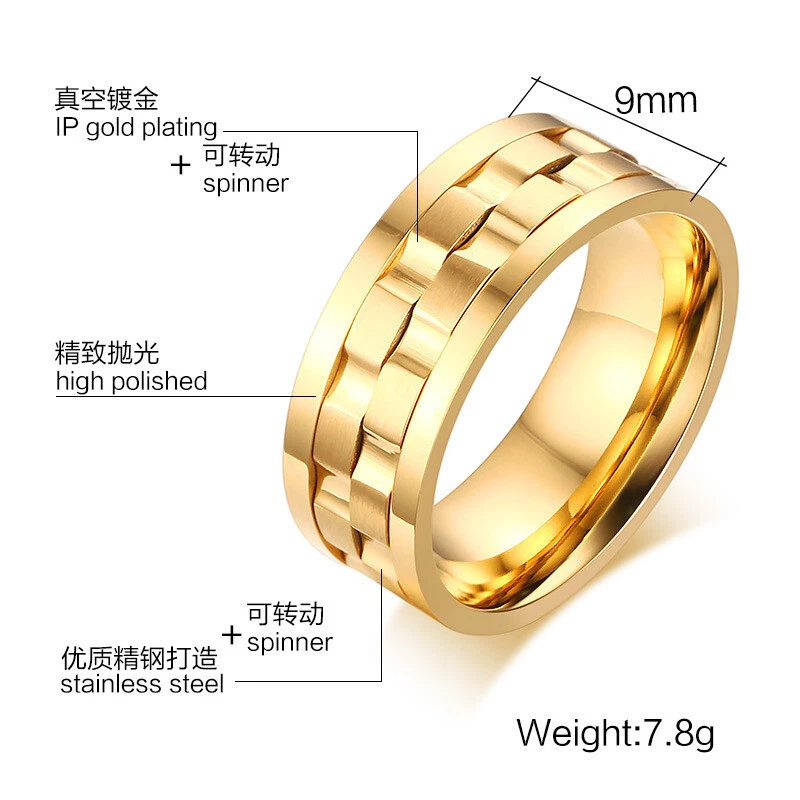 Home9mm Rotatable Pressure Relief Men's Titanium Steel Ring Fashion Jewelry Gift US