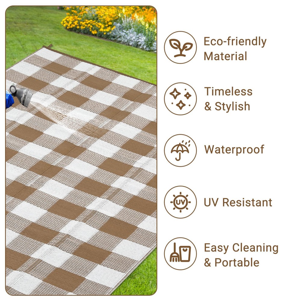 This rug is a game-changer for outdoor spaces! The stain and water resistance make it perfect for picnics, camping, or patio use—spills wipe right off. It’s incredibly durable, fade-resistant, and easy to clean, staying fresh through rain or heavy use. The texture is comfortable underfoot, and the design adds a stylish touch. Highly recommend for anyone needing a low-maintenance, weatherproof rug!