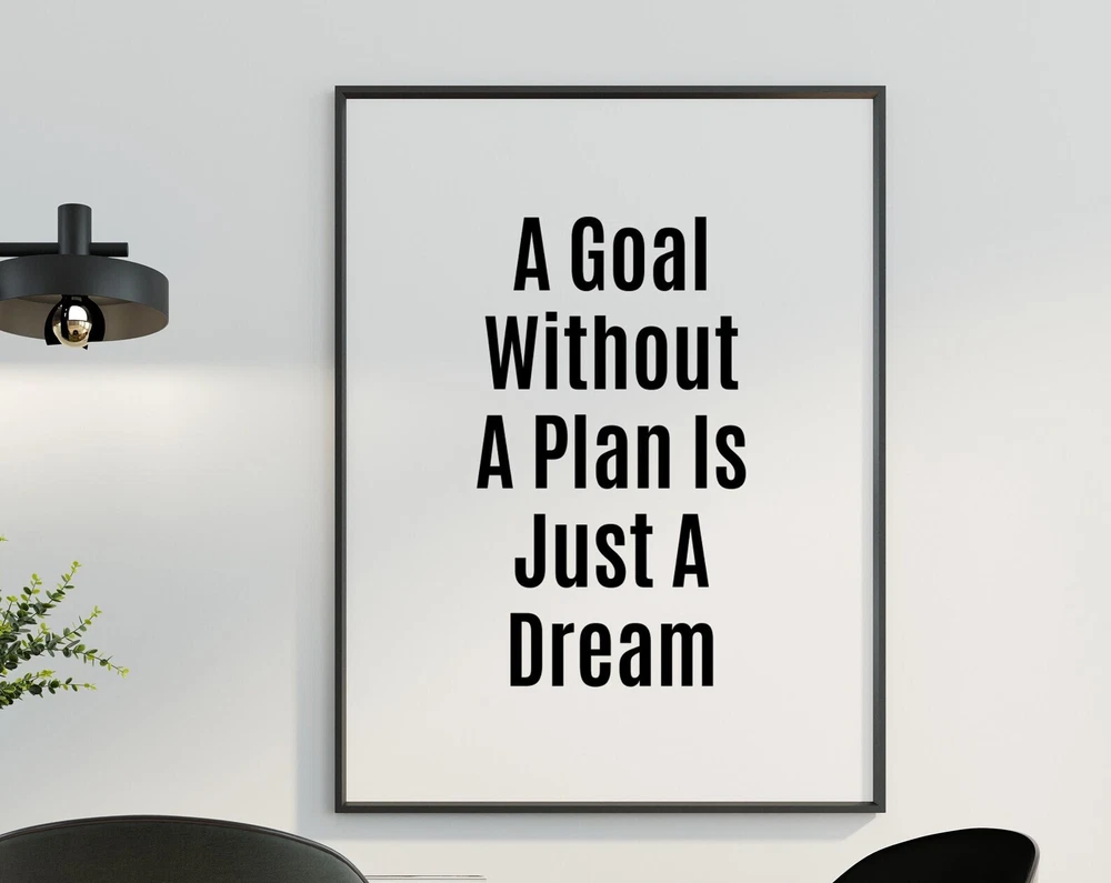 A Goal Without A Plan Is Just A Dream Printable Wall Art Motivational Quotes Print Inspirational Poster Home Office Decor Instant Material: Premium luster photo paper Print type: Inkjet printing One side printed + The finish provides the highest possible resolution and color saturation + Lasts up to 200 years in color and 400 years in black-and-white + Printed on high-quality resin-coated photo base paper medium + Posters can be hung with double-sided tape, tacks, or framed + Hand washing with a gentle cry cloth is recommended for extended durability I will hand select the best choice of paper for your chosen design to ensure top quality results for a beautiful, bright and luxurious print. All prints are sealed in cellophane slips for protection during transportation, and are shipped in a protective cardboard envelope.