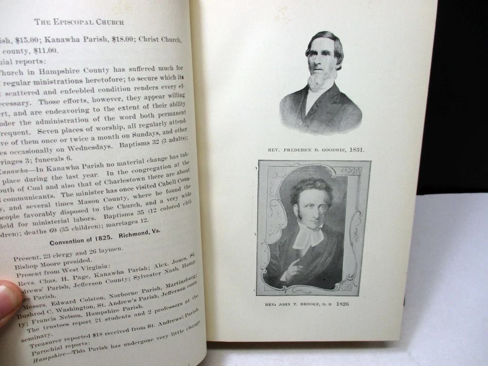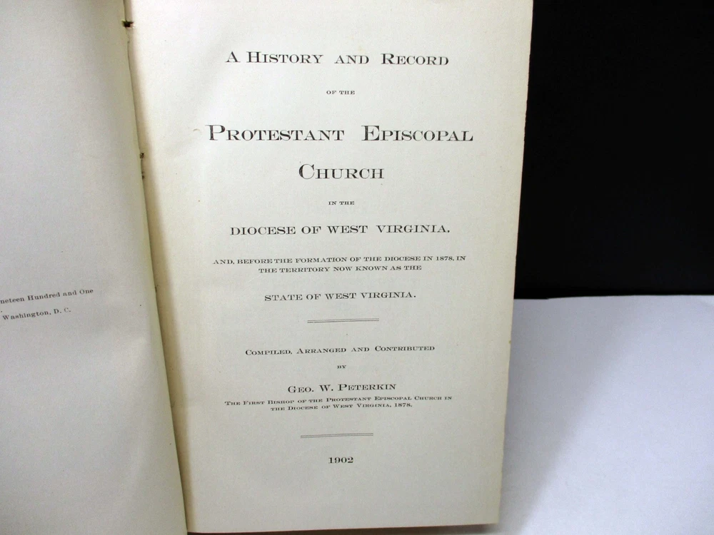 A History And Record Of The Protestant Episcopal Church West Virginia Diocese 1902 A History And Record Of The Protestant Episcopal Church In The Diocese Of West Virginia By Geo. W. Peterkin Published 1902 Entered according to an act of congress in the year 1901 854 Pages Condition: The cover has light wear on the corners and light fading on the bottom edge. The hinges have partial cracks in the paper covering. Shipping Notes: We do offer reduced shipping costs when buying multiple items.