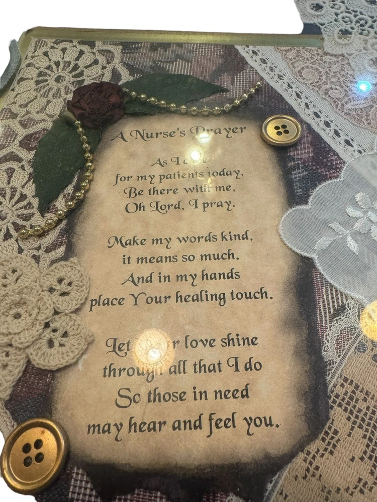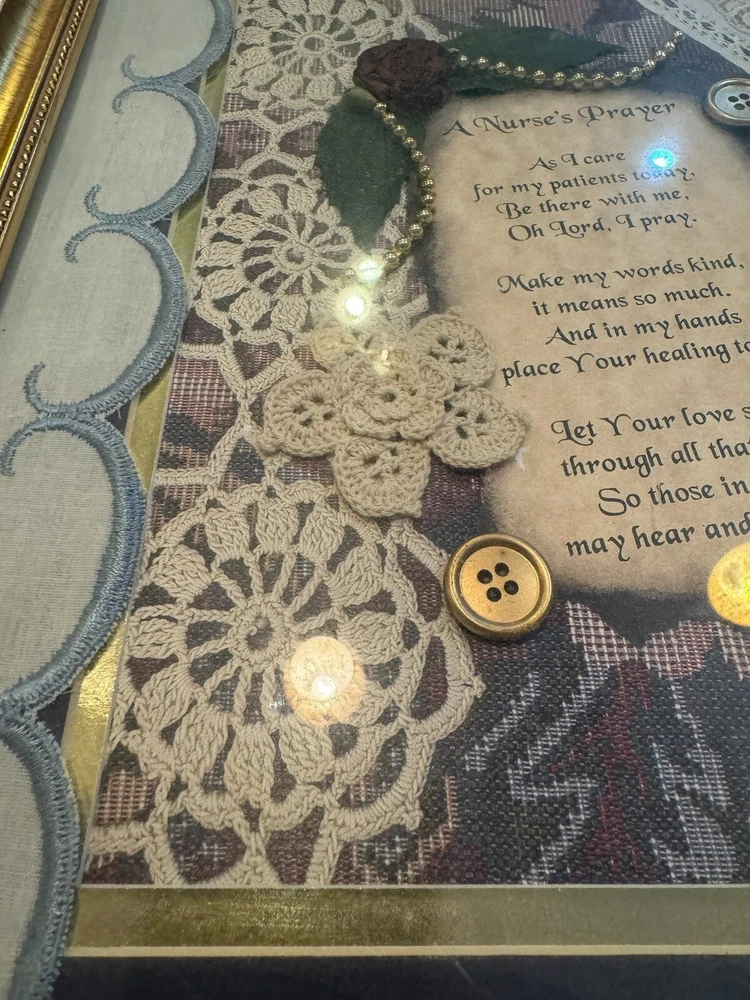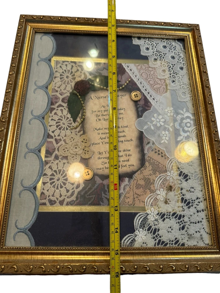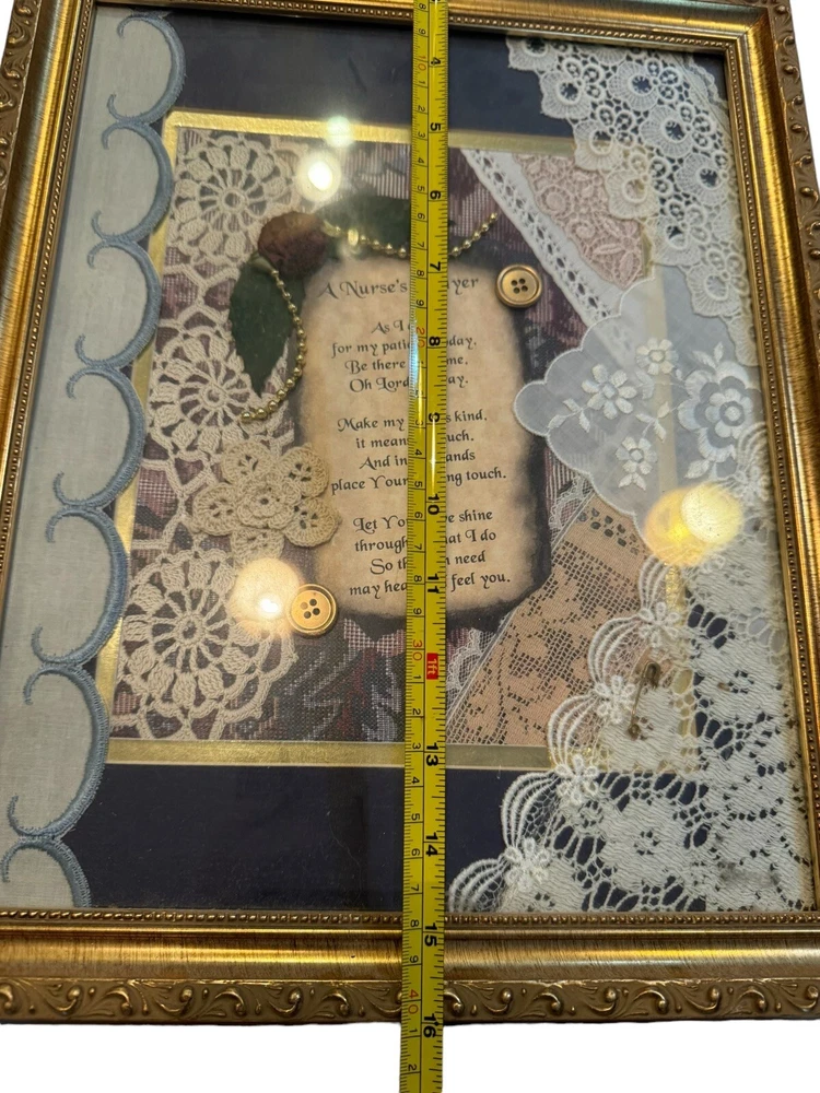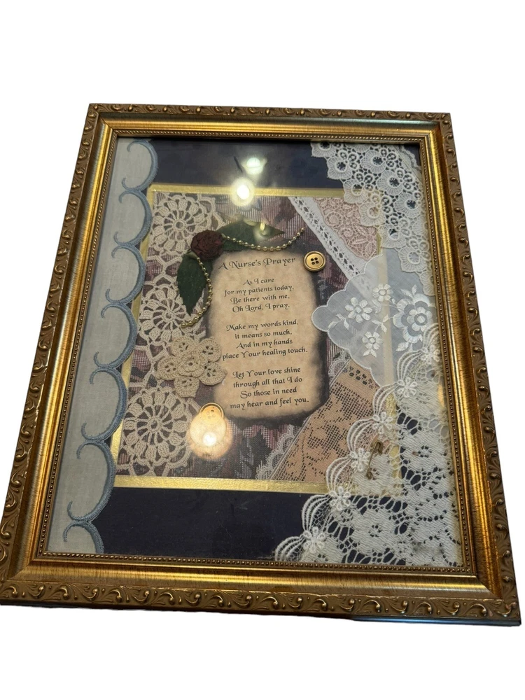 A Nurses Prayer Framed Matted Lace Beads Pressed Flower Handcrafted USA