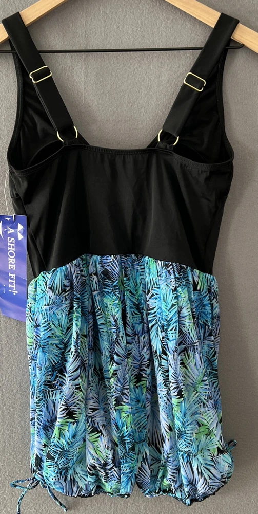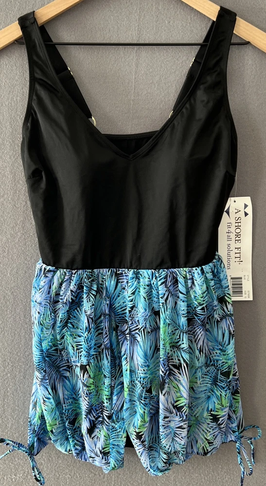 Material: Nylon, Spandex Swim Bottom Style: Swim Skirt Features: Adjustable Strap, Built-In Bra, Stretch Brand: A Shore Fit! Type: One Piece Number of Pieces: 1 piece Pattern: Floral Garment Care: Hand Wash Only Vintage: No Size: 12 Size Type: Plus Department: Women Color: Blue Theme: Beach Swim Top Style: Tank Accents: Strap
