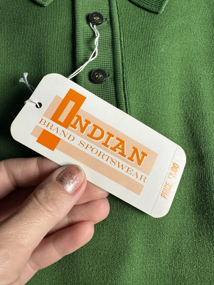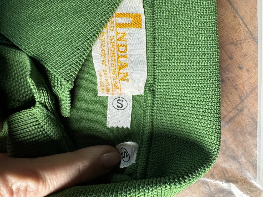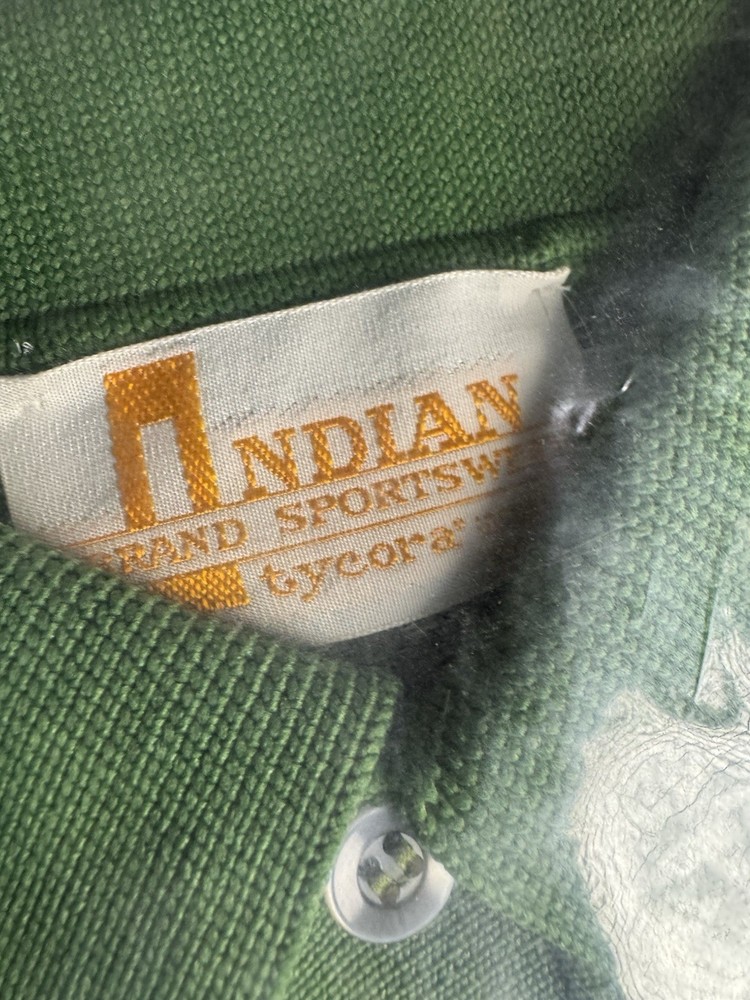 This vintage Indian sportswear small green polo is a rare find from the 1970s, featuring a retro look with short sleeves and made from nylon material. The classic polo style brings a touch of nostalgia, perfect for those who appreciate vintage fashion. This item comes in its original store bag, adding to its collectible appeal. With its unique color and retro design, this shirt is a perfect addition to any man's vintage clothing collection. This shirt is so soft! I was shocked! *~Freshly picked from an old man’s attic! Highly recommended to wash before wearing, as items have been in storage for many decades. So many aesthetic pieces from this gentleman’s personal wardrobe listed here DAILY! Follow for more great finds! Always open to offers. Ships worldwide. Embrace the charm of pre-loved and vintage with this item. While it comes with a history, rest assured that it has been rigorously inspected for quality. Minor signs of previous love, like light pilling or marks, are part of it’s unique story and sustainable~*