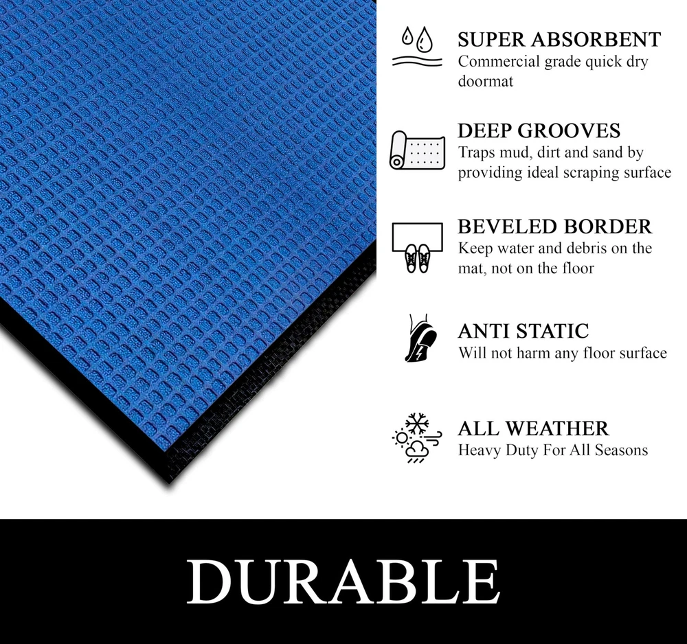 This mat is a game-changer for keeping floors clean! The deep grooves trap dirt, mud, and moisture like a champ, while the non-slip backing stays securely in place. Despite heavy use and sun exposure, the colors stay vibrant thanks to fade-resistant materials. It’s super sturdy, absorbs water well, and makes a stylish first impression. Perfect for indoor or outdoor use—highly recommend for busy entrances!