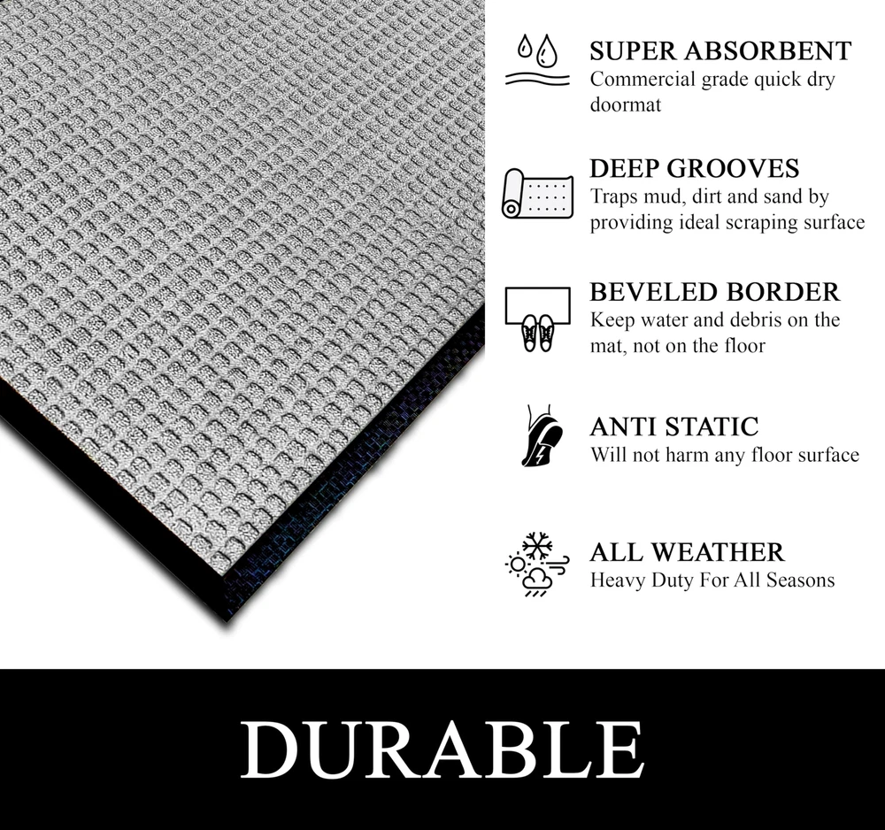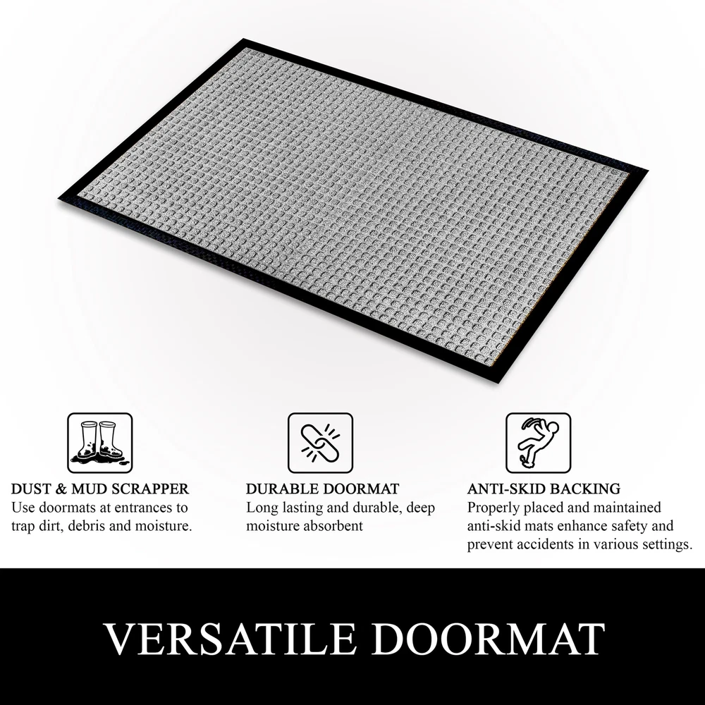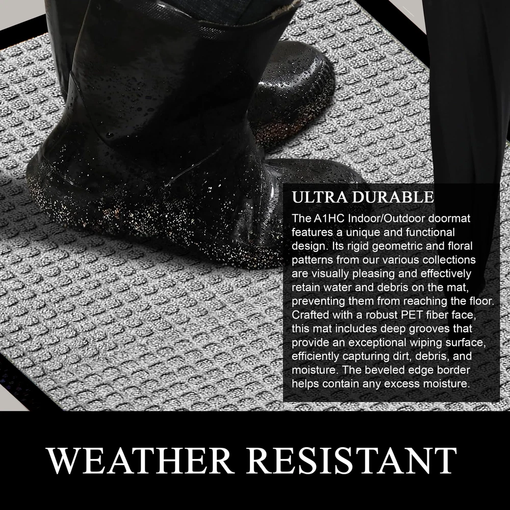 Elevate your entrance with A1HC Polypropylene rubber door mat: Its formidable dirt trapper, super absorbent, and keeps floors clean and safe. The perfect welcome mat for your front door. Dirt-Catcher & Fade-Resistant: The deep grooves of this outdoor mat efficiently trap dirt, mud, and moisture from shoes, helping to keep your floors clean and protected. Crafted with fade-resistant materials, this heavy duty door mat retains its color and appearance even after prolonged sun exposure. Non-Slip Backing & Durability: This doormat features a non-slip natural recycled rubber backing for superior traction, preventing slipping. Designed with high tensile strength, it is tear-resistant and built to withstand heavy foot traffic. The robust pet fiber face is crafted with grooves and durable geometric and floral patterns, ensuring long-lasting performance and resilience. Perfect mat for indoor or outdoor use, this doormat offers both functionality and style. Multi Purpose Mat: Measures 32 inches long x 48 inches wide, Ideal for an outdoor or indoor entrance mat, patio mat, garage mat, garden mat, or winter mat, Kitchen mat, Office mat, Hallway mat, Laundry Room mat providing durable protection for floors against dirt, moisture, and debris in high-traffic areas. Eco-friendly and Pet Friendly: Our mat, made from high-quality Polypropylene, withstands all weather, dries quickly, and retains vibrant colors. Use it as a boot mat, shoe mat, entry mat, or patio mat for reliable protection and cleanliness indoors or outdoors.The material is likely scratch-resistant or durable enough to withstand pet claws. Effortless Maintenance: Keep your entryway mat fresh and clean with ease. Sweep or vacuum regularly, shake off debris, rinse with a garden hose outdoors,for hassle-free cleaning. Enjoy a consistently tidy entrance without the hassle.