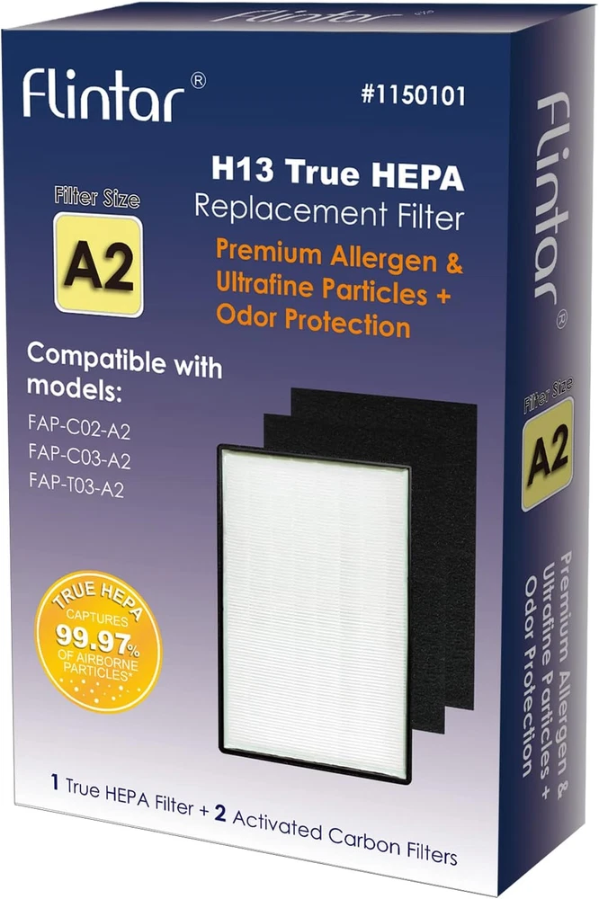 A2 True HEPA Replacement Filter Compatible With Filtrete Room Air Purifier New ✅ Flintar Type A2 True HEPA Replacement Filter, Made in TAIWAN, Compatible with Filtrete Room Air Purifier FAP-C02-A2, FAP-C03-A2, FAP-T03-A2, FAP-SC02L, Part # 1150101, Filter A2, 1-Pack Product Description: The Flintar Type A2 True HEPA Replacement Filter is designed to provide superior air filtration for Filtrete Room Air Purifiers, including models FAP-C02-A2, FAP-C03-A2, FAP-T03-A2, and FAP-SC02L. This high-quality filter effectively traps dust, pollen, and other airborne particles, ensuring cleaner and fresher air in your home or office. Made in Taiwan, it is a reliable and easy-to-install replacement option that helps maintain the performance of your air purifier. Features: True HEPA Filtration – Captures 99.97% of airborne particles as small as 0.3 microns, providing cleaner air by reducing allergens and pollutants. Compatible with Filtrete Purifiers – Specifically designed for Filtrete Room Air Purifiers, including models FAP-C02-A2, FAP-C03-A2, FAP-T03-A2, and FAP-SC02L. High-Quality Construction – Made with premium materials in Taiwan, ensuring durability and long-lasting performance for optimal air purification. Easy Installation – Simple to replace, allowing you to quickly and easily maintain the efficiency of your air purifier. Improves Air Quality – Helps remove allergens, dust, pet dander, smoke, and other airborne particles for a healthier indoor environment. 1-Pack Replacement – Includes one filter, offering a convenient and cost-effective way to keep your air purifier running at its best. Maintains Optimal Performance – Regular filter replacement ensures your air purifier continues to operate efficiently and provide maximum air purification. Number of Items 1 Batteries Included? No Compatible Device FAP-C02-A2 Air Purifier, FAP-C03-A2 Air Purifier, FAP-T03-A2 Air Purifier, FAP-SC02L Air Purifier MERV Rating 13 Unit Count 1 Count Batteries Required? No Product Dimensions 13.25"L x 8.63"W x 2.05"Th Material H13 Grade True HEPA Included Components H13 Grade True HEPA Filter and Activated Carbon Filter Item Package Quantity 1 Material Type H13 Grade True HEPA Item Weight 1.21 pounds Part Number 1150101 Color white Product Grade High Model Info A2 Compatible Devices FAP-C02-A2 Air Purifier, FAP-C03-A2 Air Purifier, FAP-T03-A2 Air Purifier, FAP-SC02L Air Purifier Manufacturer LLC Shipping Fast shipping is very important for us. Our standard USA shipping service is FREE. Your order will be shipped within 1-2 business days upon full payment received. Your order will be delivered within 1-3 business days after the handling time. We only ship to the confirmed address. We reserve the right to cancel any order for any reason at any time. We are not responsible for undeliverable addresses. Returns and payment We offer a 30 days return policy from checkout winning date. FeedBack Your feedback very important to us, after you get your package and you are satisfied with our service please leave us positive feedback If you have any problem with your order / any questions please before leave any type of feedback For any questions, using eBay contact system Please visit our eBay store to check out other items for sale! Thank you for shopping at our store.