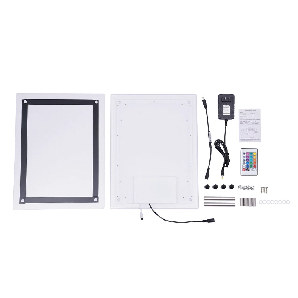??Package Included?? 1 * LED Backlit Poster 1 * Adapter 1 * Connection Cable 1 * Remote Control(Battery Included) 1 * English Manual All Accessories for Installation A4 LED Light Box Poster Frame Indoor Advertising Illuminated Projecting Sign Description A4 LED Light Box Poster Frame Indoor Advertising Illuminated Projecting Sign Description Our LED backlit poster is ideal for commercial promotions and attracting attention. Its magnificent artwork helps you deliver compelling promotional messages that will drive more traffic to your shopping center or event. The simple poster change makes it easy to use and quick to master even for novices. This would be the ideal display board to replace a conventional chalkboard! Key Features ①Sturdy and Durable ✔️ : This product is mainly made of iron and acrylic, with high hardness, high wear resistance performance, and long service life. The chrome-plated hardware screws have anti-corrosion and anti-rust properties, thus enabling the product to be assembled more tightly and firmly. ②Powerful Tool ✔️ : With this eye-catching poster, which lights up your message like a neon sign and attracts the attention of customers/viewers day and night, your shop will have more traffic. It is ideal for commercial promotion and attracting attention. You can also let your favorite movie posters shine in the new light at all times with this amazing backlit frame. It will help you add a unique touch to your bedroom and show everyone your elegant attitude toward life. ③ Excellent Vision ✔️ : The large size of the display panel (11.3*7.87 inches) can give you an ultra-wide visual experience. The design of the scribing light guide plate makes it have a high color rendering and uniform brightness. At the same time, the use of RGB color LED lights can also bring you a richer color viewing experience. ④ Versatility ✔️ : You can adjust the mo de(Flash, Strobe, Fade, Smooth), speed, and light(16 colors) y ou want by using the remote control according to the usage environment and thus making your billboard more unique. ⑤ Stylish Appearance ✔️ : The clear edges outside the black frame present a crystal-like and modern texture a nd the colorful lights make it more technological. It is not only a practical billboard but also an ideal decoration. ⑥ High Stability ✔️ : The two thickened extension bars at the bottom make the produc t stand stably on the bar counter, thus providing you with a more stable display. ⑦Easy to Store ✔️ : The compact size (11.69*8.27 inches), ultra-thin thickness, and removable stand design make it easy to store in a small drawer. ⑧User-friendly Design ✔️ : You only need to unscrew the four fixing screws to change the poster at will, so even a novice can quickly master how to use it. In addition, the simple product structure, complete installation parts, and English manual can help you to quickly and accurately install it. It also has two display methods, standing display and wall display, providing a variety of ways to display your posters. ⑨Energy Saving ✔️ : High-quality energy-saving LED lights are up to 85% more energy efficient than halogen lights. The low energy consumption(18W) makes it consume less electricity but has a high brightness output that can save you money on your electricity bill. Details Wire Protection Cover: The wire protection cover with an opening at the bottom effectively prevents rainwater from entering, so you can use it outdoors with confidence. Rounded Corners: Compared with square corners, rounded corners design can effectively protect your skin from accidental bruises, thus providing you with a higher level of safety. Application This product is very suitable for movie theaters, promotions, retail stores, restaurants, art displays, trade shows, banks, hospitals, libraries, counters, offices, companies, menu boards, jewelry stores, hotels, studios, etc. for exhibition/advertising/decoration. Specification Material: Iron, Acrylic, Hardware Color: Black, Clear Process: Chrome Plated Assembly Required: Yes Shape: Rectangular Style: Modern Mounting Type: Wall Mount Frame Type: Poster Frame Charging Method: Power Cord Plug Standard: US Standard Light Source: RGB LED(Included) Power Consumption: 18W Working Temperature: -20~60℃/-4~140℉ Output: Three CMOS Drain+Open Output Max. Load Current: 2A Each Color Supply Voltage: DC 12V Connecting Mode: Common Anode Charger Voltage: 110-240V 50/60Hz 1.0A Charger Output: 12V 2.0A Connection Cable Voltage: 12-24V Applicable Paper Size: A4 Product Size: 37.7*29cm /14.8*11.4 in Display Size: 28.7*20cm /11.3*7.87in Gross Weight: 2kg/ 4.41 lbs Net Weight: 1.8kg/ 3.97 lbs Package Size: 45*25*6 cm/ 17.72*9.84*2.36 in Package Included 1 * LED Backlit Poster 1 * Adapter 1 * Connection Cable 1 * Remote Control( Battery I ncluded) 1 * English Manual All Accessories for Installation Notes This package does not include the advertisement poster. Products with electrical plugs are designed for use in the US. Please check compatibility before purchasing. Please read the operating manual completely before use. And pay particular attention to the safety instructions included. Please allow the slight color difference caused by the shooting light and the 1-3 cm error due to manual measurement, and make sure you do not mind before ordering. Welcome to highcredit1188 ~ ?? If you have any question , please contact us , and we will reply you as soon as possible. Welcome to highcredit1188 ~ ?? If you have any question , please contact us , and we will reply you as soon as possible. Payment Delivery details Terms of sales About us Contact us Payment We accept ebay payment 。 Fees such as import duties, taxes are not included in the item price or shipping costs. These charges are the buyer's responsibility. Delivery details Shipping: 2-9 working days to: USA Terms of sales We maintain high standards of excellence and strive for hundred percent customer satisfac