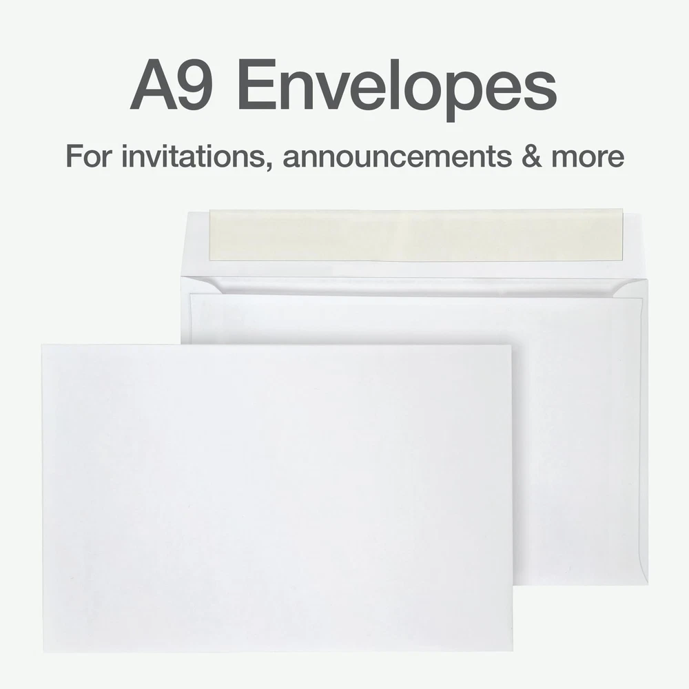 A9 Envelopes with Self Seal Closure, 5-3/4 x 8-3/4 Inches, 24 lb. White, For Gre FOR INVITATIONS & ANNOUNCEMENTS: These A9 envelopes are perfectly sized for half fold cards, 5 x 8 invitations, RSVPs, and announcements, making them ideal stationery envelopes for events, celebrations, and everyday mail SELF SEAL ENVELOPES: Self-sealing envelopes feature a peel-and-press closure for a fast, secure seal with no moisture or mess, saving time and improving efficiency during mail prep PREMIUM 24 LB WHITE PAPER: Made from smooth 24 lb white wove paper, these envelopes deliver a clean, professional look and are durable enough to protect photos and other important stationery INKJET PRINTER COMPATIBLE: These A9 envelopes are inkjet printer compatible, making it easy to customize addresses, names, or designs for invitations, announcements, and professional-looking mailings for a fraction of the cost of custom printing VALUE PACK FOR EVENTS & MAILINGS: Stock up on this box of 100 self-sealing envelopes ensures you always have one on hand for last minute notes, thank yous, letters and more; a practical supply for events and everyday use Shipping We offer FREE shipping on all orders! We ship within Three business days of payment, usually sooner. We use a selection of shipping services such as UPS, FedEx, USPS etc. We only ship to the lower 48 states, no APO/FPO addresses or PO Boxes allowed. Local pickups and combined shipping options are not provided at this time. Return You can return a product for up to 30 days from the date you purchased it. Any product you return must be in the same condition you received it and in the original packaging. Please keep the receipt. Payment We accept payment by any of the following methods: PayPal Please pay as soon as possible after winning an auction, as that will allow us to post your item to you sooner! Feedback Customer satisfaction is very important to us. If you have any problem with your order, please contact us and we will do our best to make you satisfied. Contact Us If you have any queries, please contact us via ebay. We usually respond within 24 hours on weekdays. Please visit our eBay store to check out other items for sale! Thank you for shopping at our store.