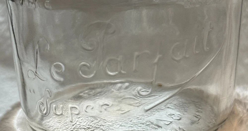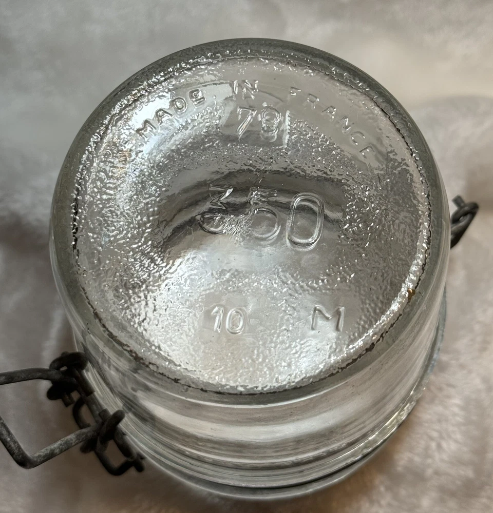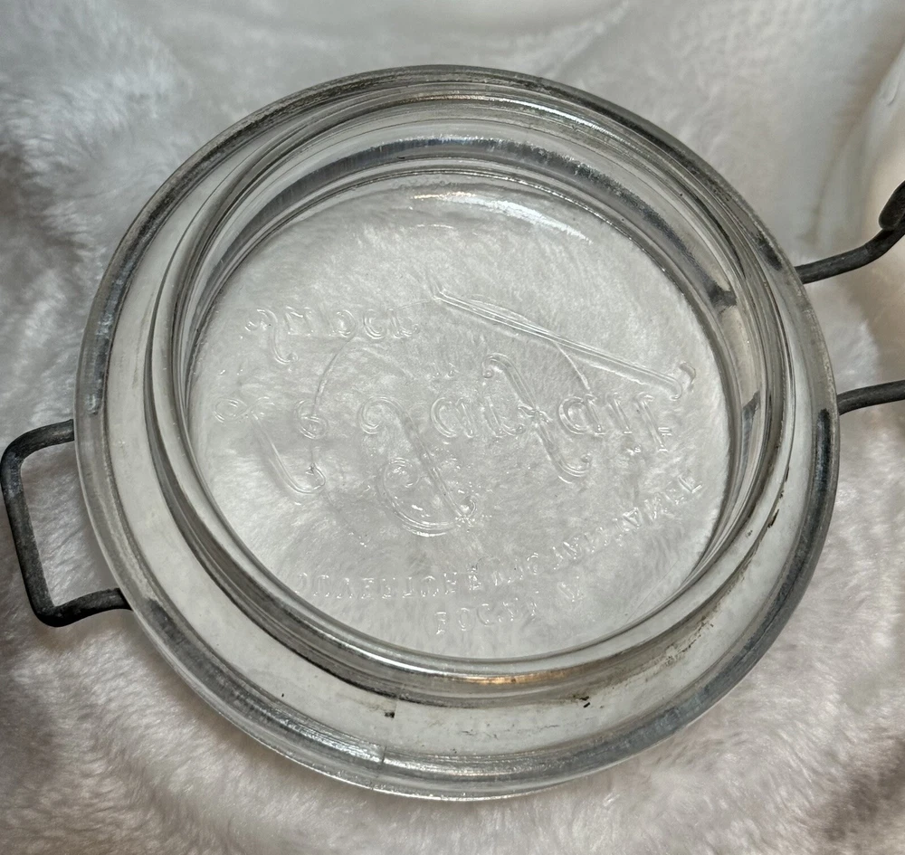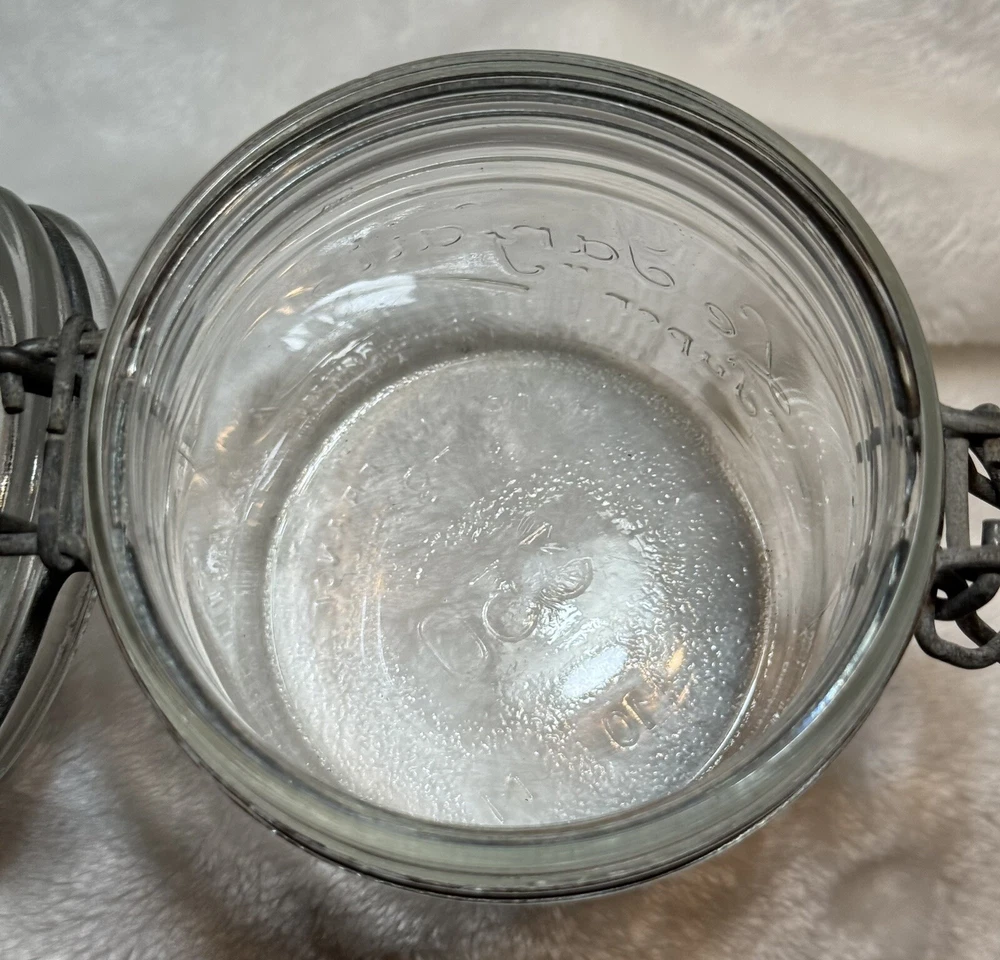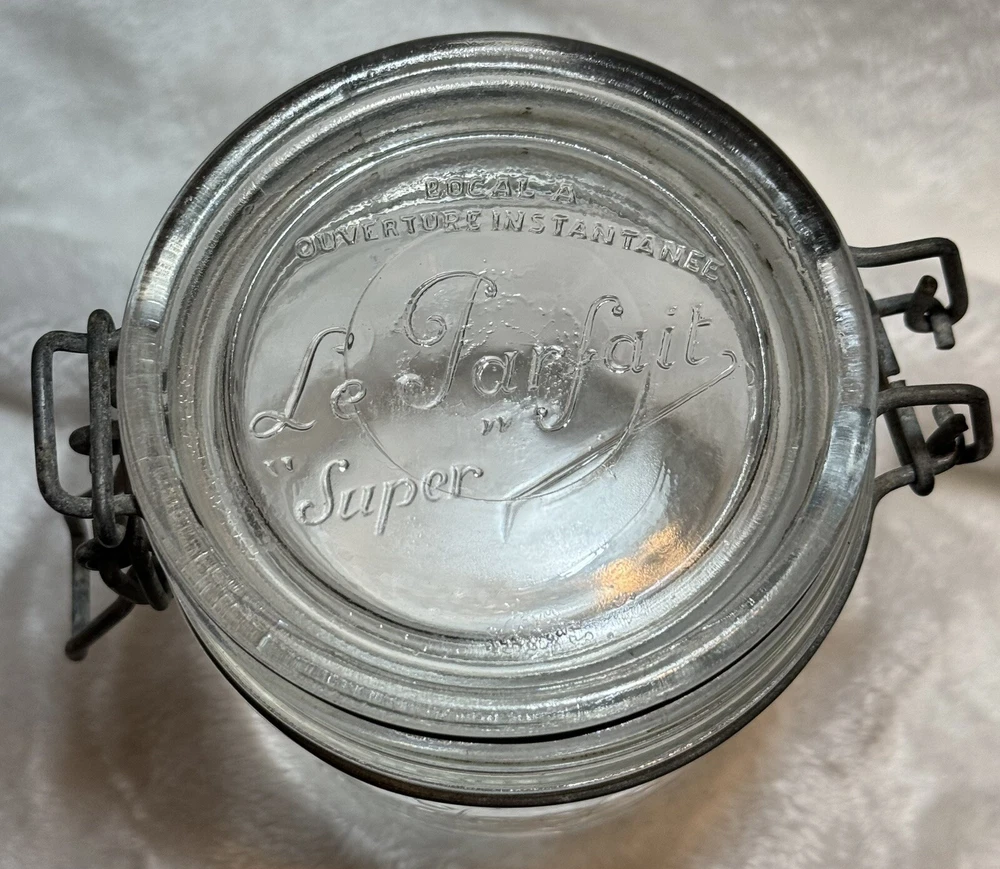 Le Parfait Super fruit jar. Glass lid and locking wire clamp. The glass lid Le Parfait “super”, base made in France. The jar and lid are embossed all over. Please see pictures for items condition and description. As is only we do not accept returns Thank you and happy bidding lil Debbie
