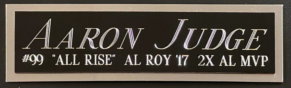 AUCTION IS FOR NAMEPLATE ONLY! PROFESSIONALLY ENGRAVED SINCE 1990 THE ALUMINUM PLATE IN TEAM COLORS MEASURES 2 X 7.5 COMES WITH GOLD LINE DOUBLE SIDED TAPE ALREADY APPLIED-JUST PEEL AND STICK. THE PERFECT FINAL TOUCH FOR YOUR SIGNED BASEBALL-BAT-JERSEY-HELMET-PUCK-STICK-MASK-FOOTBALL-BASKETBALL-BOXING GLOVES-SOCCERBALL-WWE-MMA-GOLF FLAG CASES AND PHOTO DISPLAYS. TOGETHER WE CAN MAKE YOUR MEMORABILIA LOOK LIKE MUSEUM PIECES. ($3.50 USA) ($14 INTERNATIONAL) TOTAL SHIPPING (1-100) TRY "COMBINE SHIPPING" IF THAT DOES NOT WORK I WILL REFUND SHIPPING OVERAGE BUBBLE MAILER WE CARRY MANY PLAYERS THAT ARE NOT LISTED ASK IF YOUR PLAYER IS NOT IN MY EBAY STORE