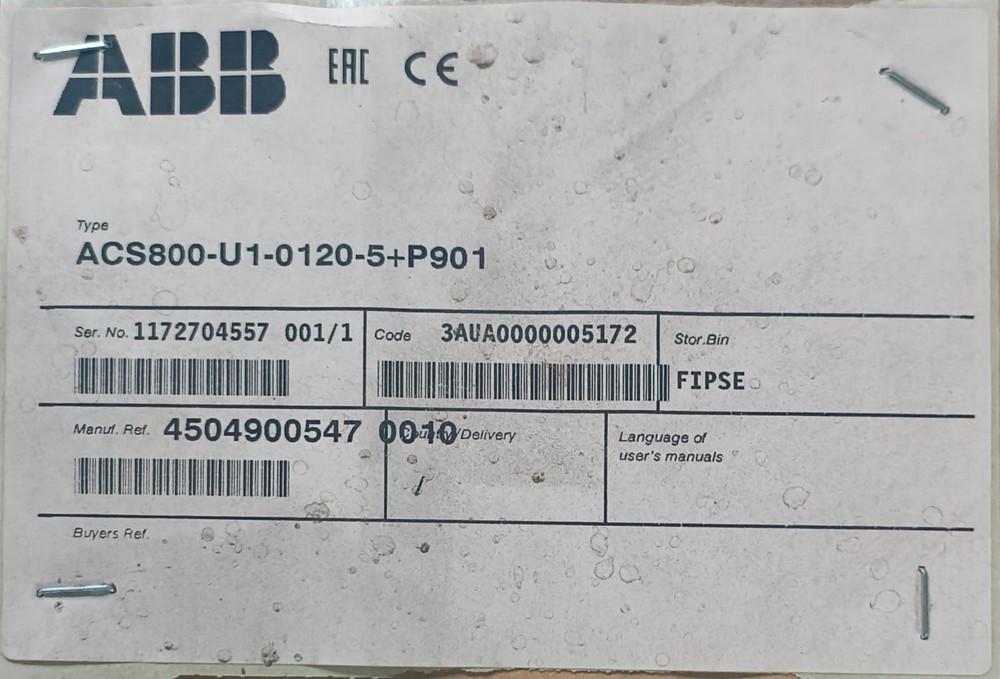 HomeABB | ACS800-U1-0120-5 +P901 | 90 KW | 120 HP | 155 A | NEW OPEN BOX, FAST SHIP