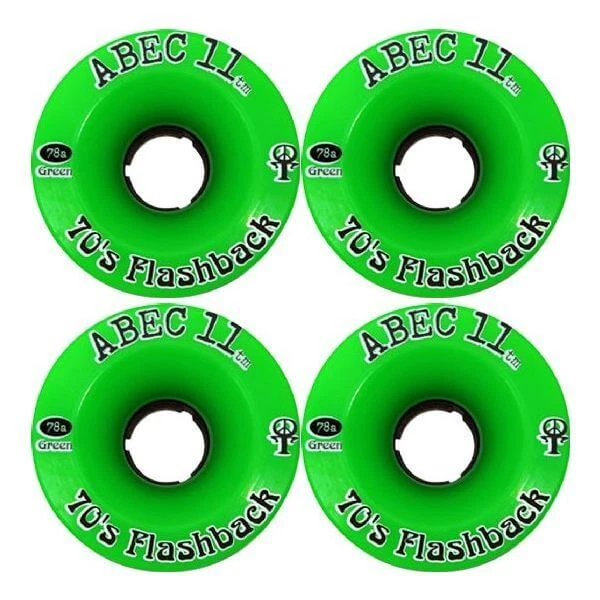 70mm ABEC 11 70's Flashbacks Lime Skateboard Wheels - 78a + Viper Strike Skateboard Bearings 8mm Precision ABEC 7 Skateboard Bearings These brand new ABEC 11 wheels are high-quality and made to last. They measure 70mm in diameter and 78a in hardness, and will provide a smooth ride. Features: One (1) set of 70mm 78a ABEC 11 70's Flashbacks Lime Skateboard Wheels - 78a (4 wheels total) One (1) box of Viper Strike Skateboard Bearings 8mm Precision ABEC 7 Skateboard Bearings (8 bearings total) Note: Bearings are not installed in wheels. Once installed, product cannot be returned or exchanged.
