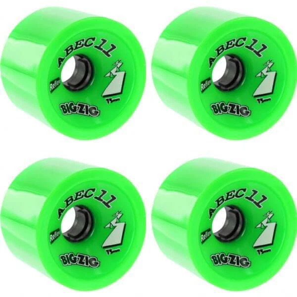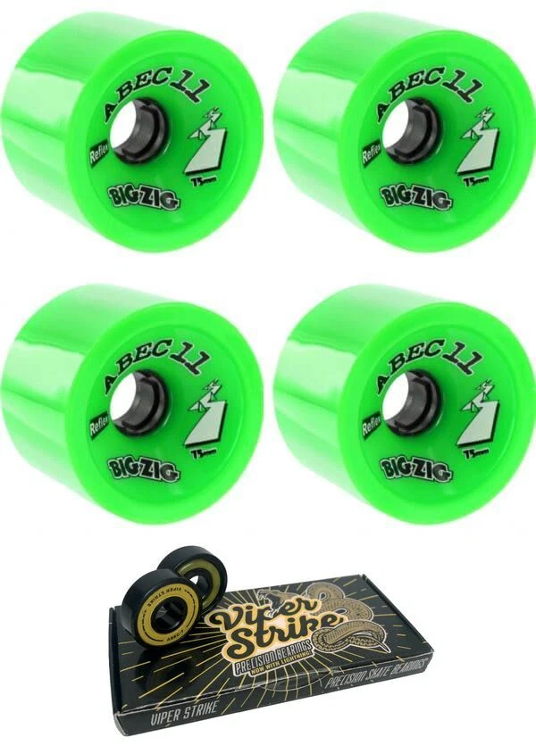 75mm ABEC 11 Bigzigs HD Lime Skateboard Wheels - 80a + Viper Strike Skateboard Bearings 8mm Precision ABEC 7 Skateboard Bearings These brand new ABEC 11 wheels are high-quality and made to last. They measure 75mm in diameter and 80a in hardness, and will provide a smooth ride. Features: One (1) set of 75mm 80a ABEC 11 Bigzigs HD Lime Skateboard Wheels - 80a (4 wheels total) One (1) box of Viper Strike Skateboard Bearings 8mm Precision ABEC 7 Skateboard Bearings (8 bearings total) Note: Bearings are not installed in wheels. Once installed, product cannot be returned or exchanged.