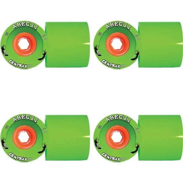 ABEC 11 Centrax HD Lime/Orange Skateboard Wheels - 75mm 75a (Set of 4)