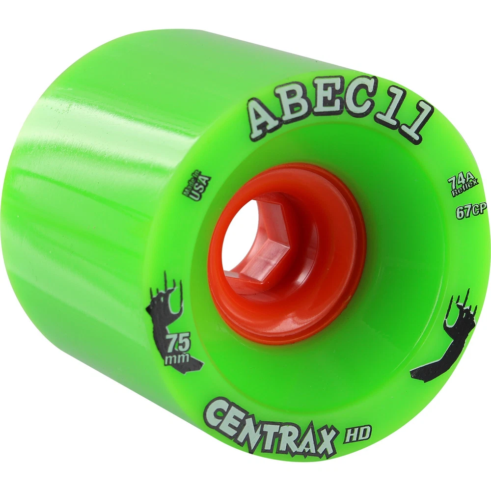 75mm ABEC 11 Centrax HD Lime / Orange Skateboard Wheels - 74a + Viper Strike Skateboard Bearings 8mm Precision ABEC 7 Skateboard Bearings These brand new ABEC 11 wheels are high-quality and made to last. They measure 75mm in diameter and 74a in hardness, and will provide a smooth ride. Features: One (1) set of 75mm 74a ABEC 11 Centrax HD Lime / Orange Skateboard Wheels - 74a (4 wheels total) One (1) box of Viper Strike Skateboard Bearings 8mm Precision ABEC 7 Skateboard Bearings (8 bearings total) Note: Bearings are not installed in wheels. Once installed, product cannot be returned or exchanged.