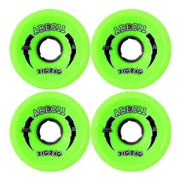 70mm ABEC 11 ZigZags Lime Skateboard Wheels - 80a + Viper Strike Skateboard Bearings 8mm Precision ABEC 7 Skateboard Bearings These brand new ABEC 11 wheels are high-quality and made to last. They measure 70mm in diameter and 80a in hardness, and will provide a smooth ride. Features: One (1) set of 70mm 80a ABEC 11 ZigZags Lime Skateboard Wheels - 80a (4 wheels total) One (1) box of Viper Strike Skateboard Bearings 8mm Precision ABEC 7 Skateboard Bearings (8 bearings total) Note: Bearings are not installed in wheels. Once installed, product cannot be returned or exchanged.