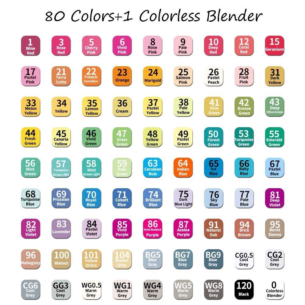 Abeier is a professional stationery manufacturer, established in 2001. Our company has more than 500 employees, excellent designers and high-end production equipment. The stationery products made by us have been sold worldwide for more than 20 years. Our business philosophy is ?Safety, Simple, Stable? Abeier Advanced 80+1 Colors Dual Tip Art Markers Perfect for any artistic or hobby project as well as sketching and highlighting VIBRANT COLORS: Professional artist quality double-ended permanent art markers. Highly pigmented and vibrant markers are great for all kinds of style FINE BULLET POINT & CHISEL TIPS: Artists love using our dual tipped master markers because of their accurate line control, superior color blending and the flexibility of a smooth paintbrush ECONOMICAL DESIGNED: Marker barrels are ergonomically designed. Their color coded caps have ridges to prevent the markers from rolling off a table Note: Please put on the cap after use, or it will dry quickly Read more Product Details The universal 80 colors can meet all your drawing needs The exquisite design and delicate dual tip make you enjoy painting very much Artist grade high end waterproof ink, your colors will naturally connect without any variegation Our quick drying non streaking markers are perfect for design, sketch, manga,marker, graphic, homework, bills, calendar, illustration, drawing embellishments, intricate designs, etc Read more FINE BULLET POINT & CHISEL TIPS: Premium dual tips allow you to create various styles, sketches and patterns with ease. Whether it is smearing on a large area or portraying fine lines, it can do well. SUPERIOR QUALITY: The art markers with alcohol-based ink, quick-drying, low odor, toxic-free which are built to last against fading, and blend beautifully for added vitality to your artwork. EASY TO IDENTIFY & CARRY: Color named caps makes marker pen’s organization, selection and identification easier. In addition, these marker pen set is equipped with a strong and durable black carrying case for ease in traveling and storing. WIDELY APPLICATION: Highly pigmented and 80 vibrant colors markers are great for anime pictures, fashion design, coloring, drawing, writing, sketching, illustrating, shading, designing, rendering, manga, comics, cartooning, adult coloring books and more.
